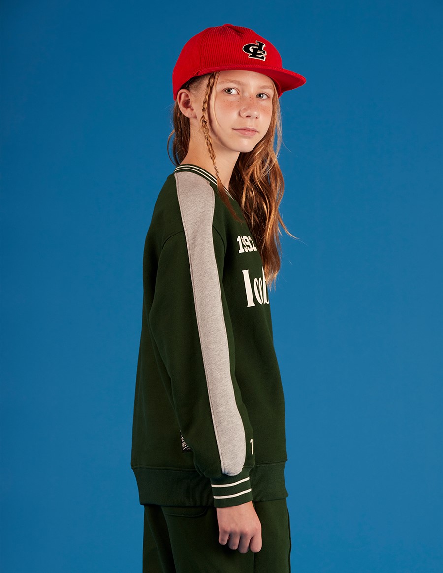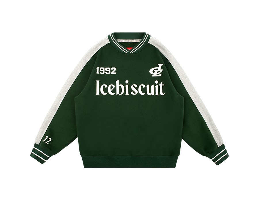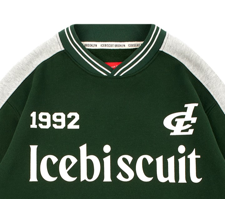 아이스비스킷 특유의 컬러 블록 디자인과 넉넉한 맨투맨 실루엣은 트렌디하면서도 스타일리시한 느낌을 연출합니다.