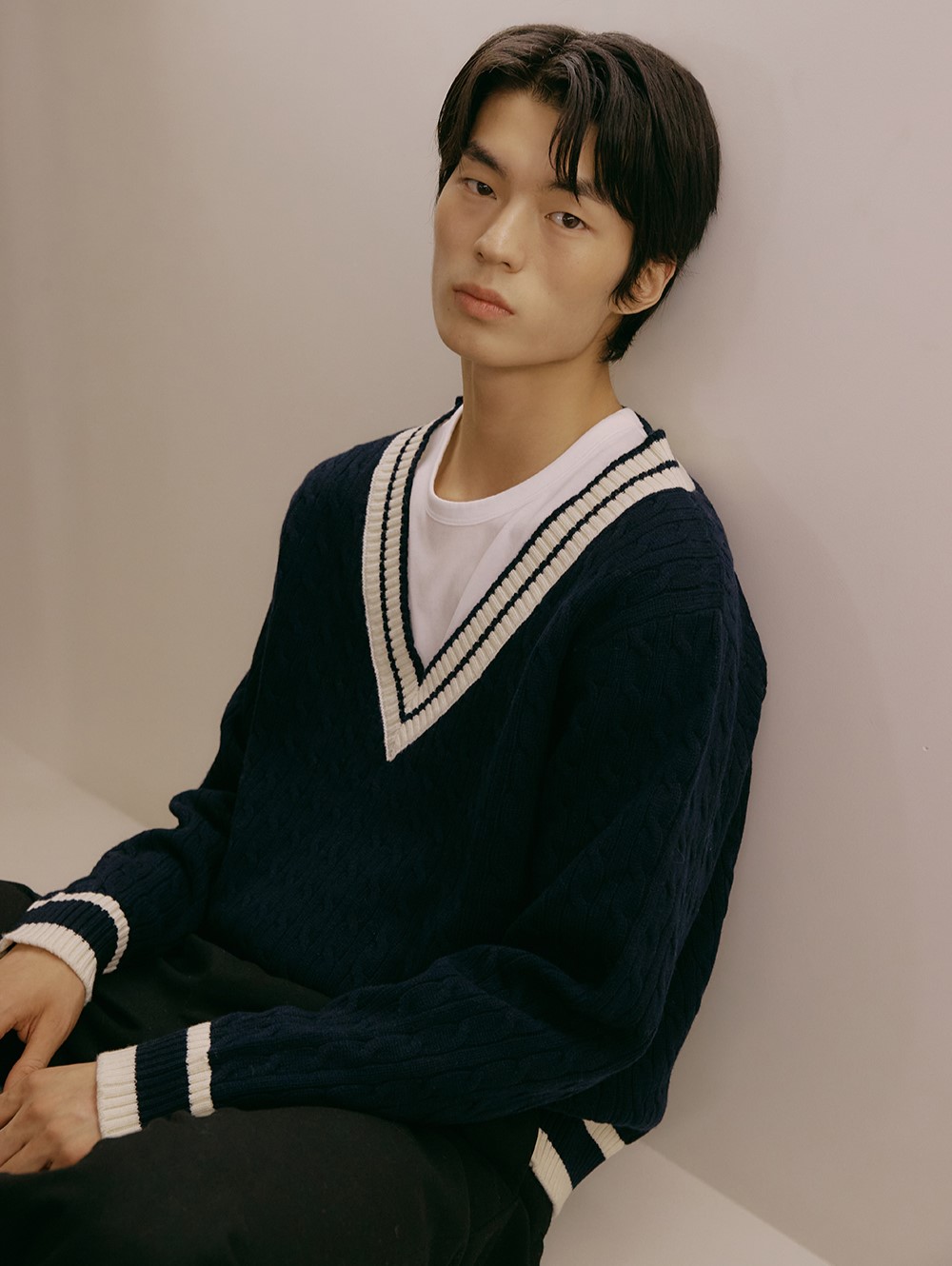 V NECK CABLE KNIT PULLOVER navy - 감도 깊은 취향 셀렉트샵 29CM