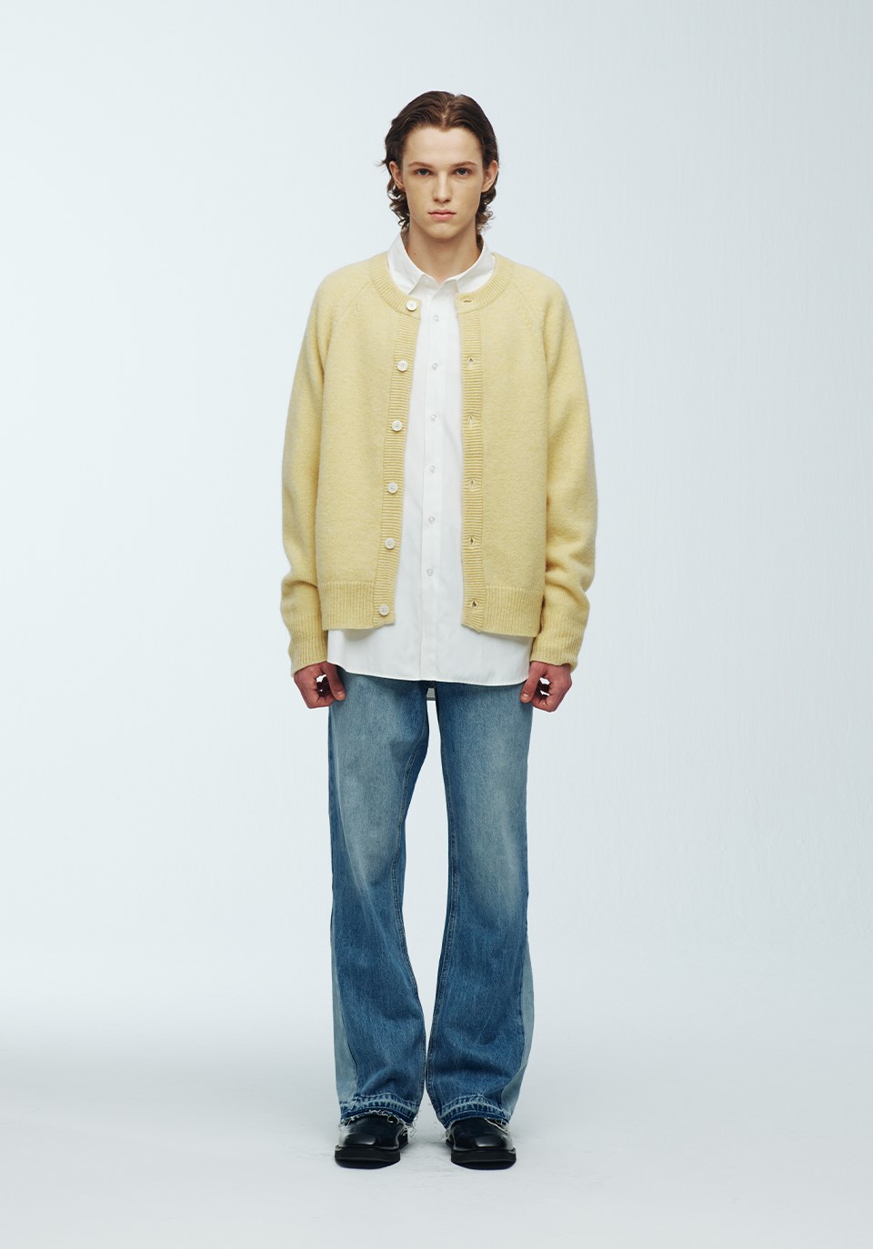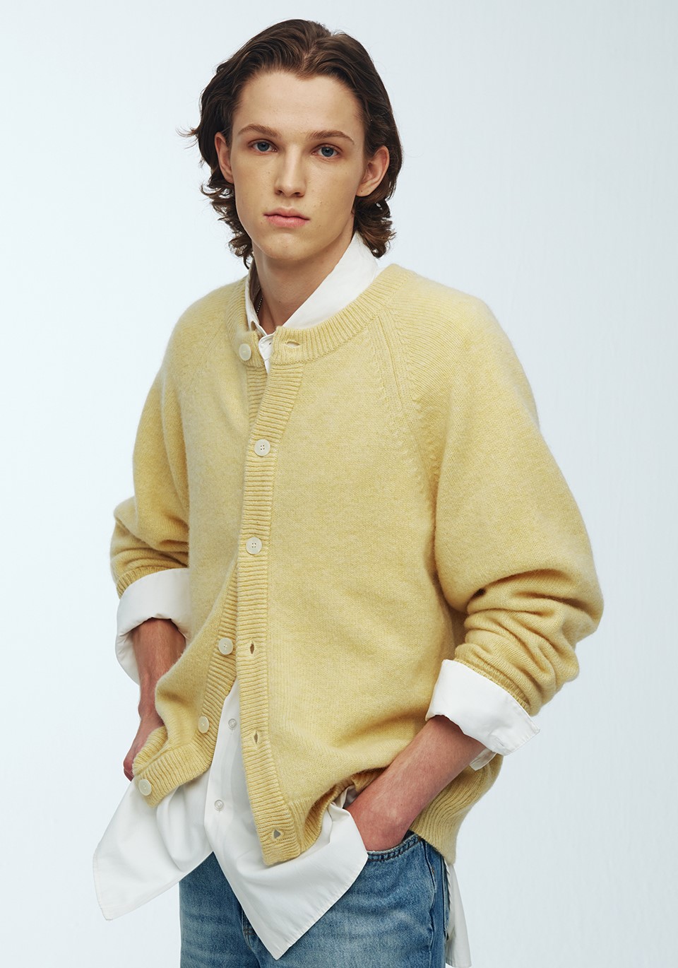 쉐기독 울 100% 라운드 가디건 YELLOW