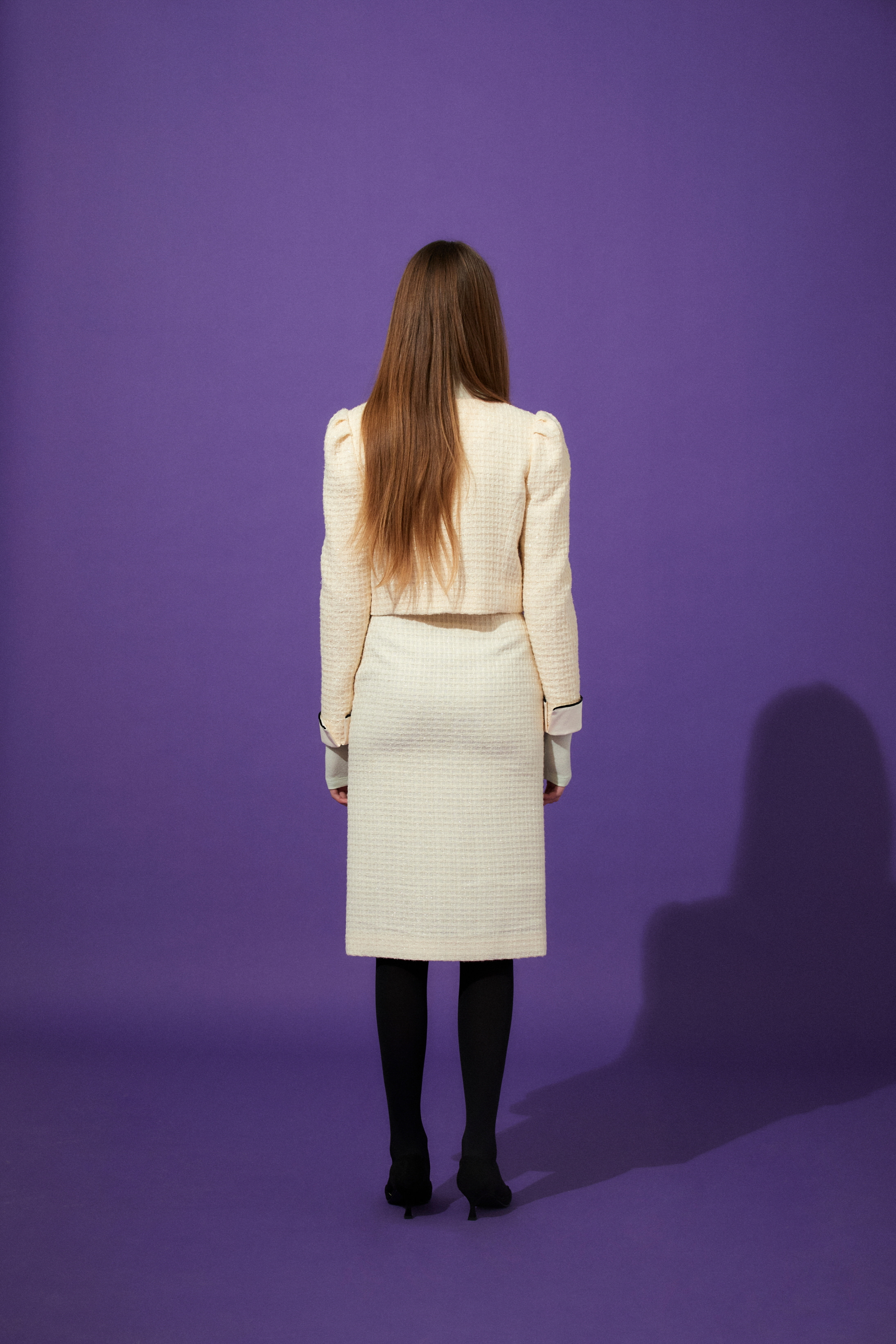 한블리 68회 한초임 크롭 자켓 옷 패션 브랜드 정보 - 쟈니헤잇재즈 CORSAGE CROP JACKET - IVORY: 여성스러운 매력을 한층 더 강조하는 아이보리 크롭 자켓
