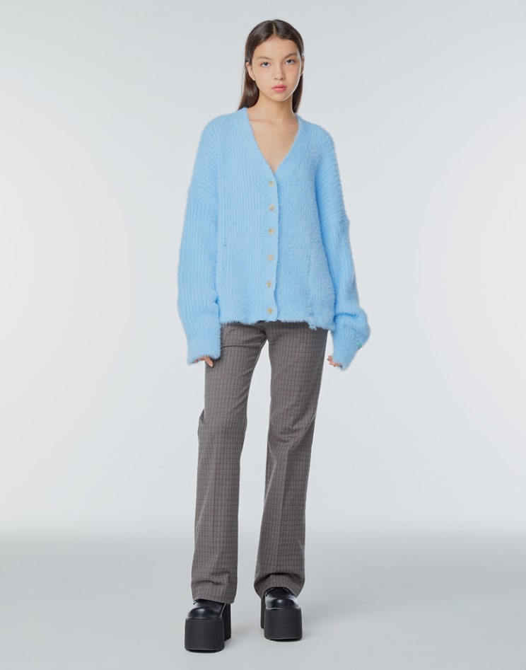 INSTANTFUNK 23FW 오버사이즈 니트 가디건입니다. 날개사 원사를 사용하여 부드러운 터치감과 도목을 높게 올려 따뜻하고 포근한 느낌을 더해주었습니다. 여유 있는 품과 스탠다드한 기장으로 제작