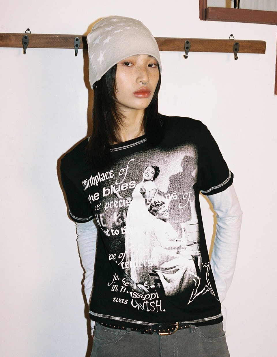 또한, 스커트와 레이어드하여 스타일리시하게 연출할 수도 있습니다.