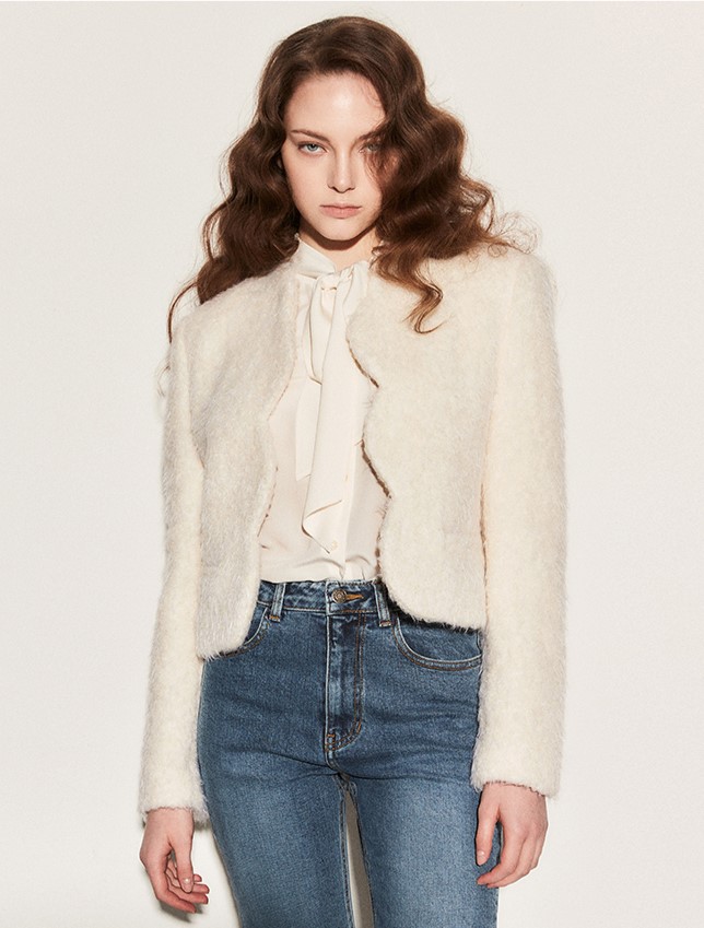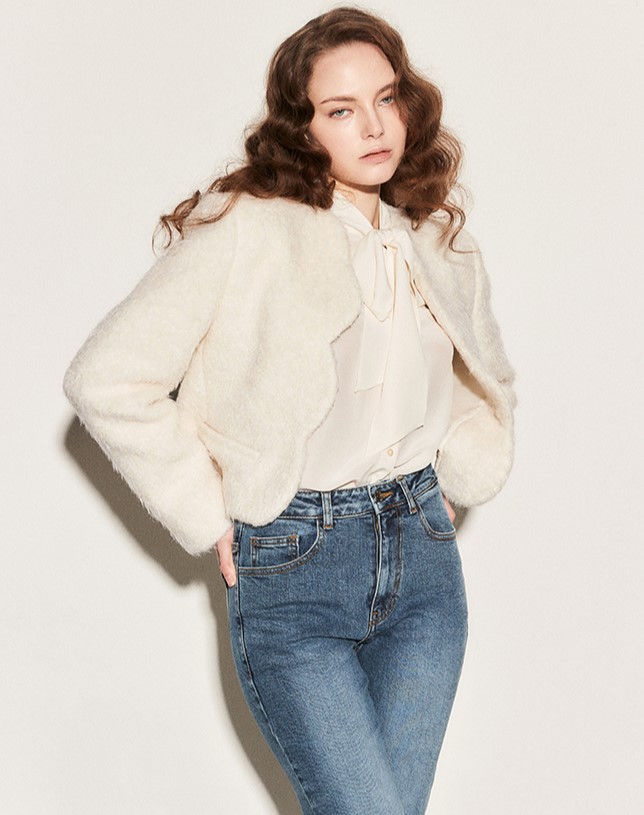 [MUDIDI 무디디] Wool scallop crop jacket 001 White