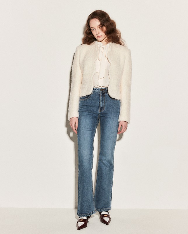 무디디 울 스캘럽 크롭 자켓은 봄과 가을철 데일리 룩에 활용하기 좋은 아이템입니다.