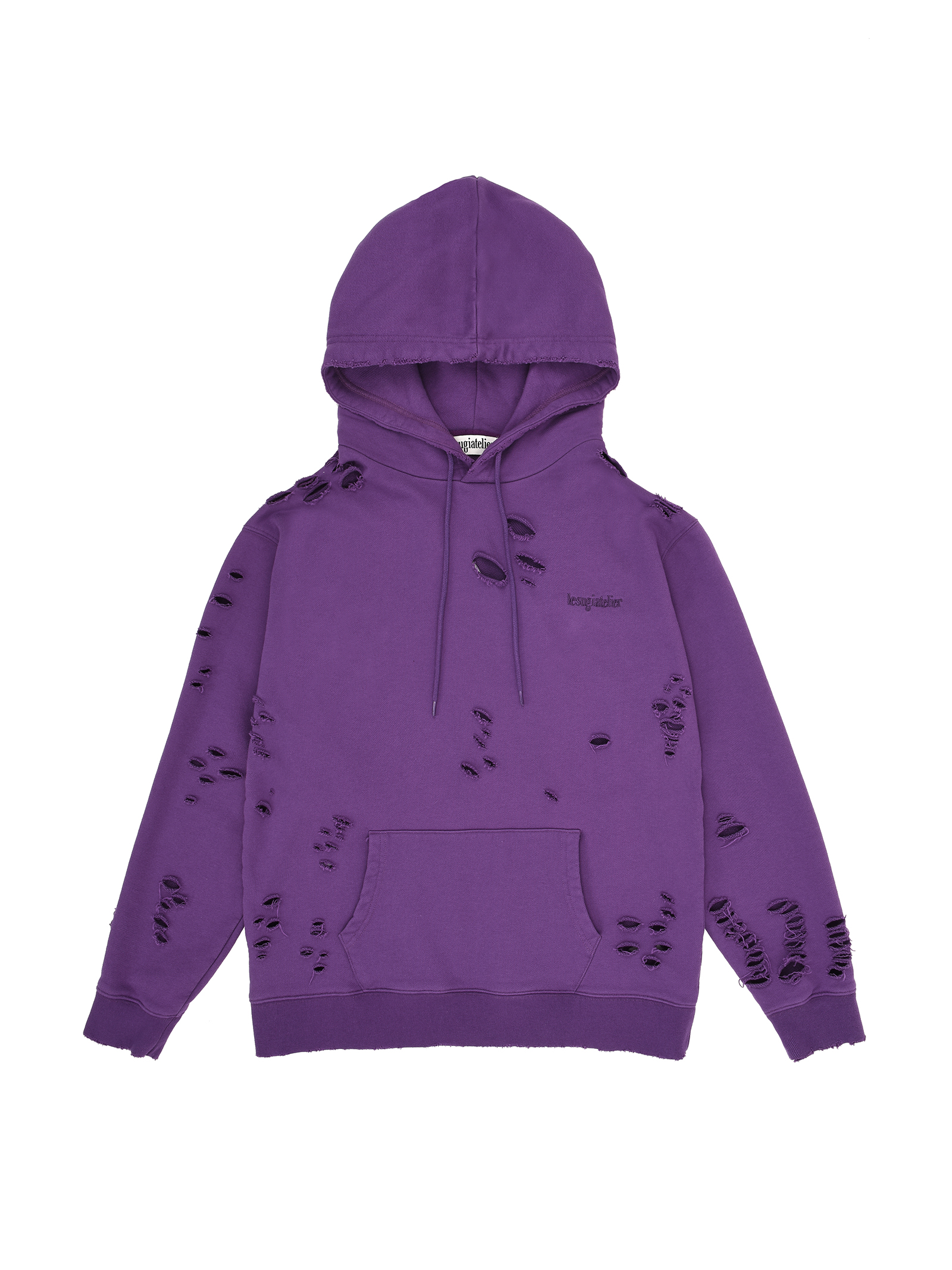 르수기아뜰리에(LESUGIATELIER) Logo Embroied Distressed Jersey Hoodie (Purple). <p style="font-size: 16px; line-height: 26px; color: #000000; text-align: center"> </p><p style="font-size: 16px; line-height: 26px; color: #000000; text-align: center">