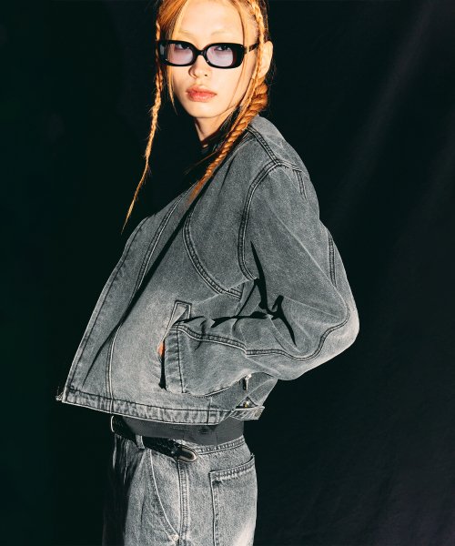 인사일런스 우먼(INSILENCE WOMEN) 브러쉬드 레이싱 데님 자켓 DARK GREY - 사이즈 & 후기 | 무신사