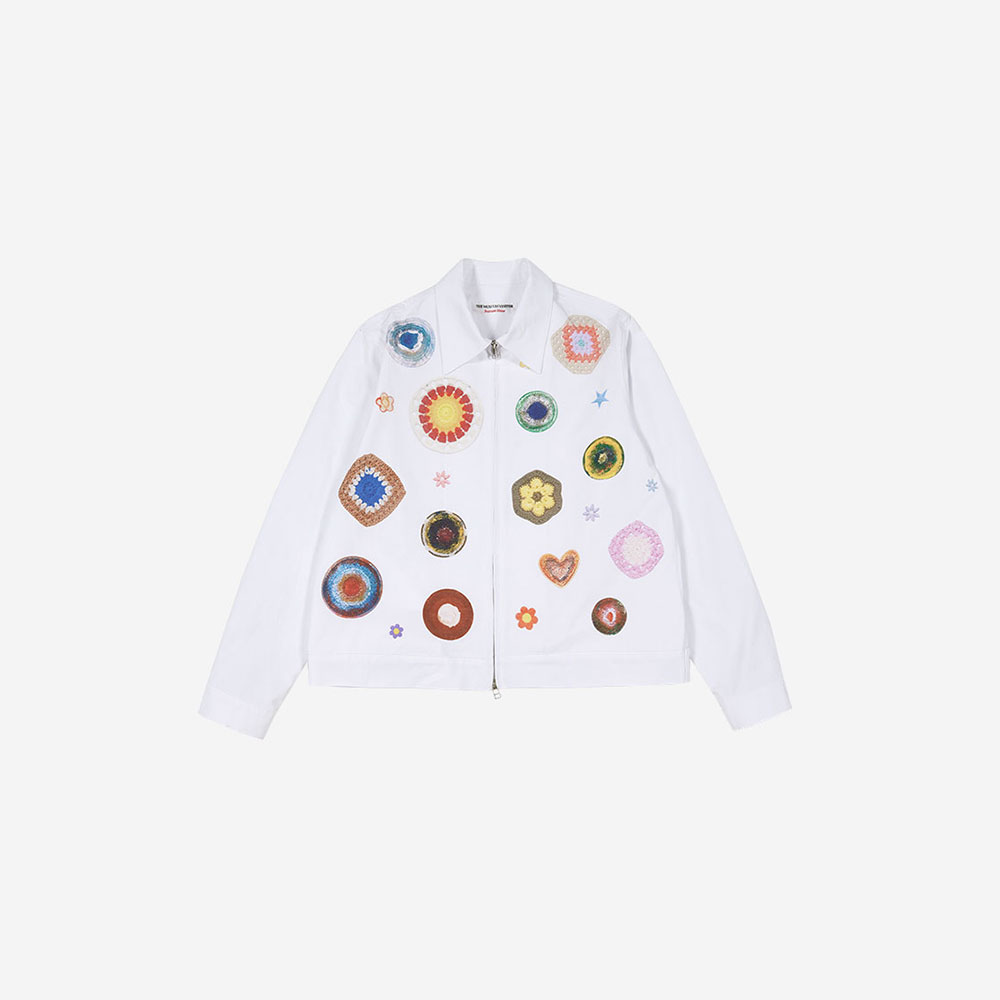 The Museum Visitor Multi Knit Patch Printed Shirts Jacket White