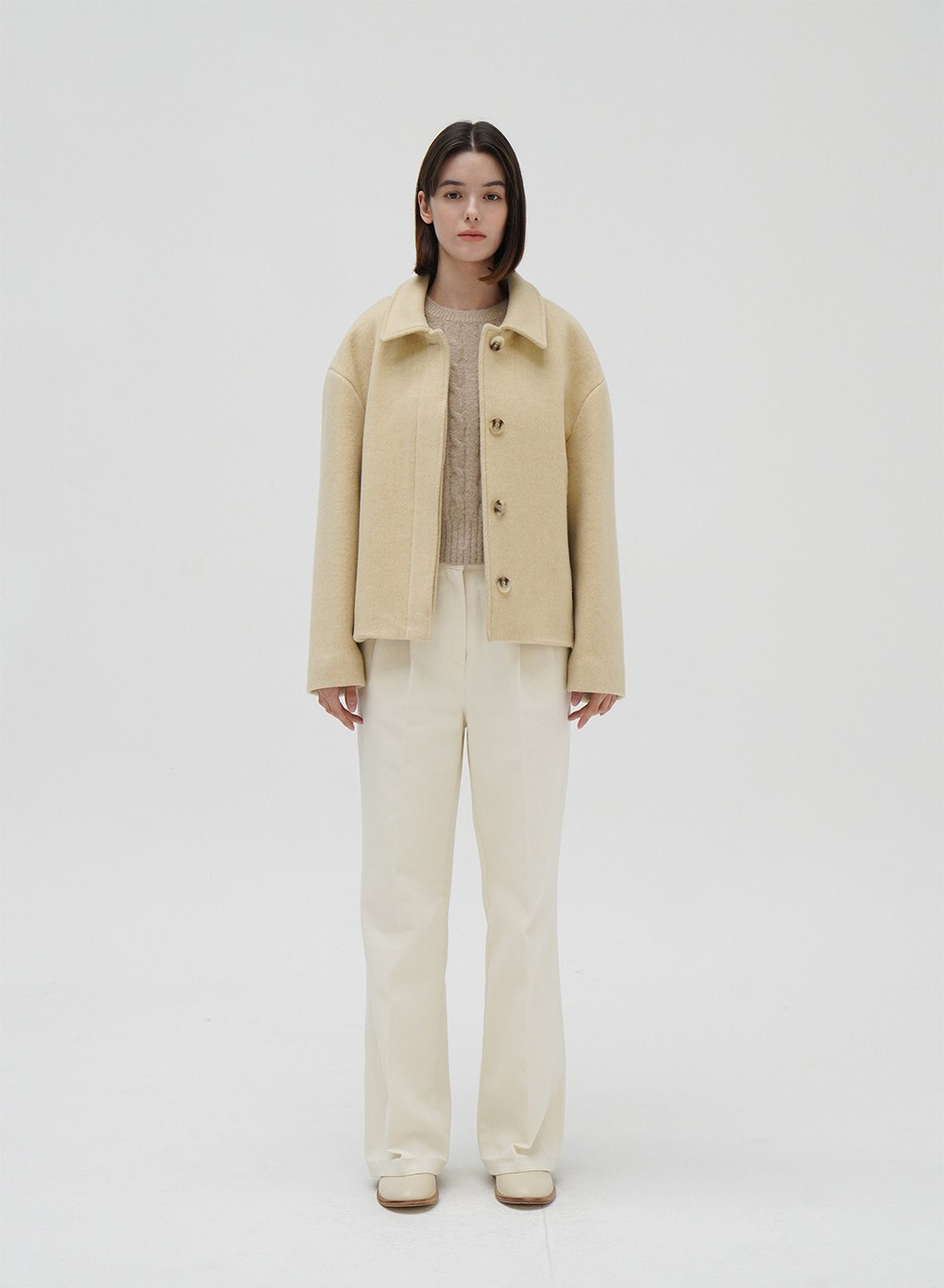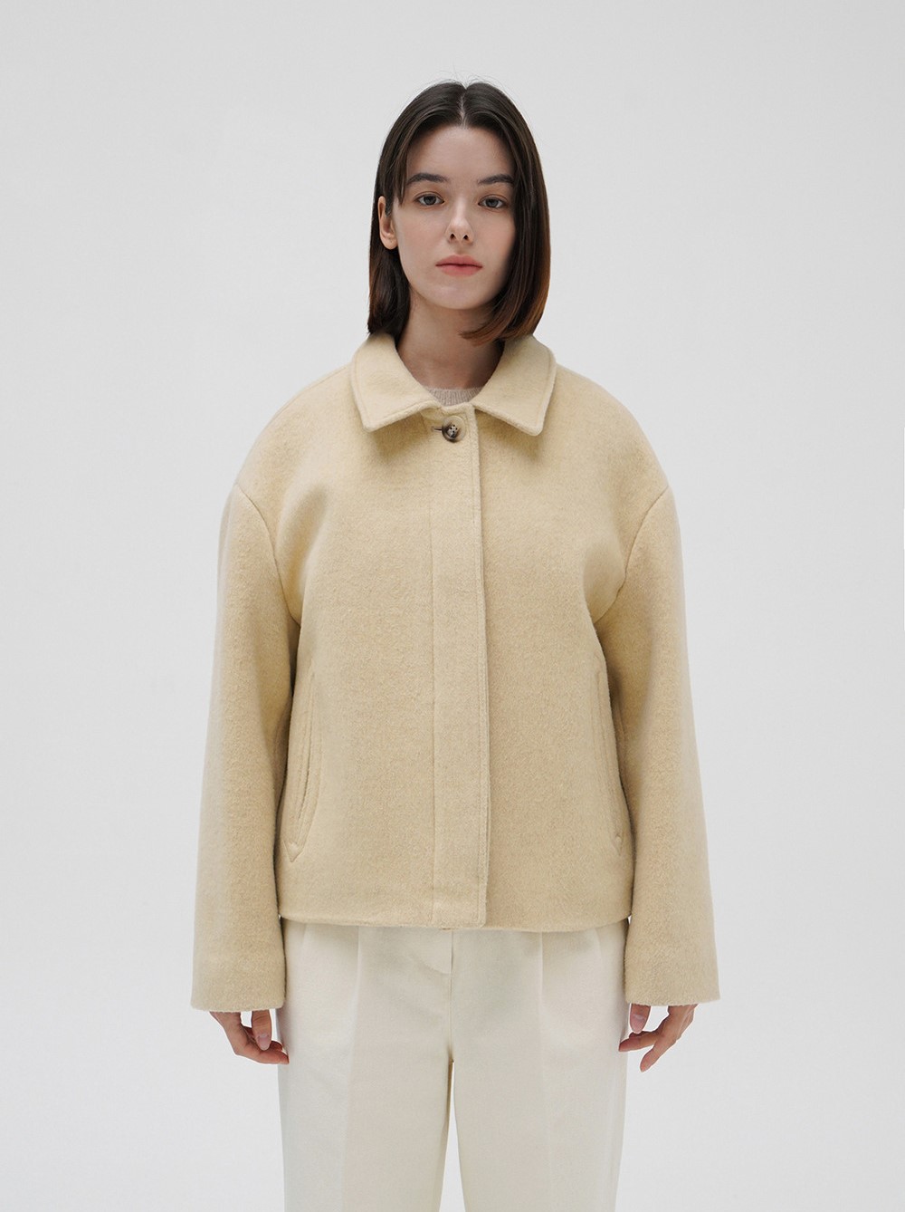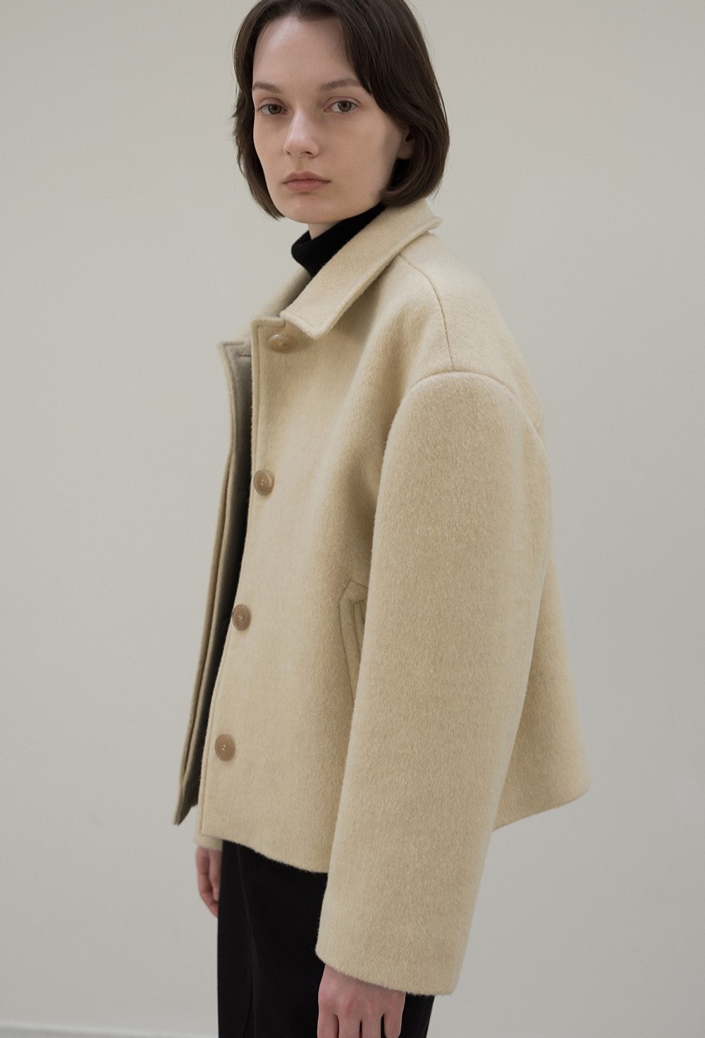 르바 낙타털 블렌드 크롭 코트 - 버터와 함께 부드러운 감촉과 따뜻함을 동시에 느껴보세요!