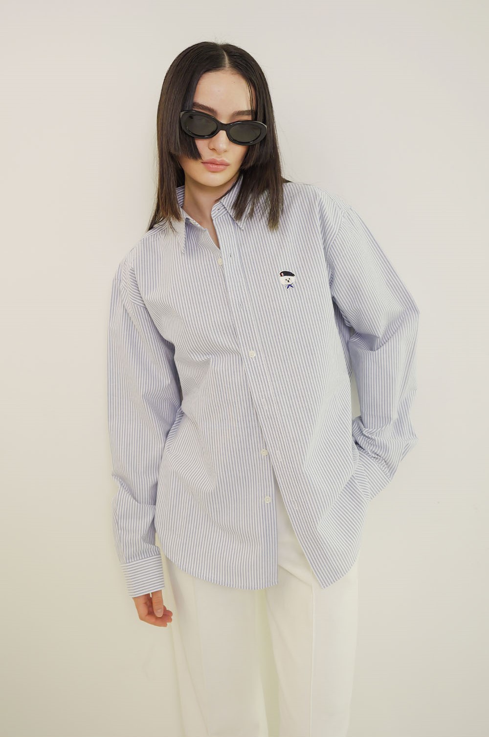비욘드클로젯 뉴 파리지앵 와펜 클래식 옥스포드 스트라이프 셔츠 스카이 블루는 프렌치 시크한 와펜 디테일과 클래식한 옥스포드 스트라이프 디자인이 어우러진 셔츠입니다.