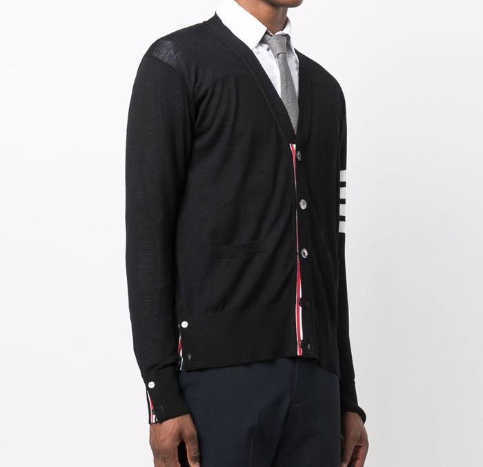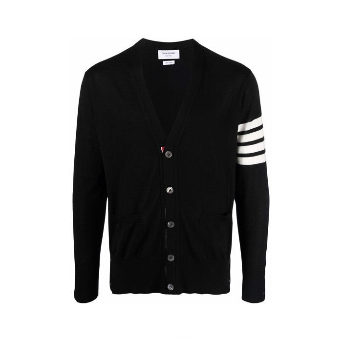 톰브라운 4바 메리노 울 가디건은 톰브라운의 대표적인 디자인인 4바 디자인과 고급스러운 메리노 울 소재가 어우러진 가디건입니다.
