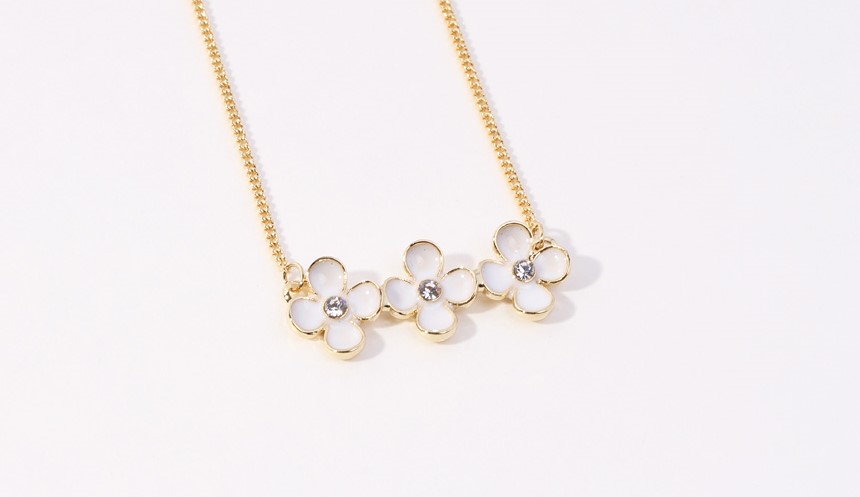 흰 T셔츠와 청바지와 같은 심플한 옷에 트리플 물망초 목걸이를 착용하면 여성스럽고 우아한 분위기를 연출할 수 있습니다.