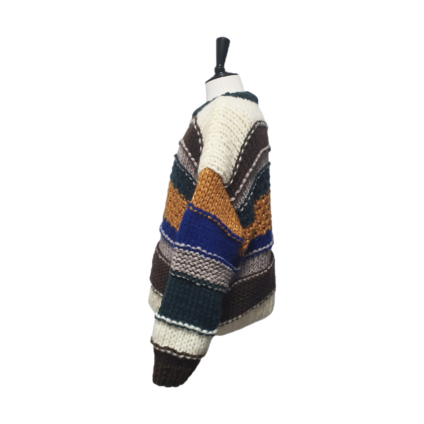 로이나인 그린&브라운 단가라 니트는 따뜻하고 아늑한 겨울 무드를 연출하는 니트입니다.