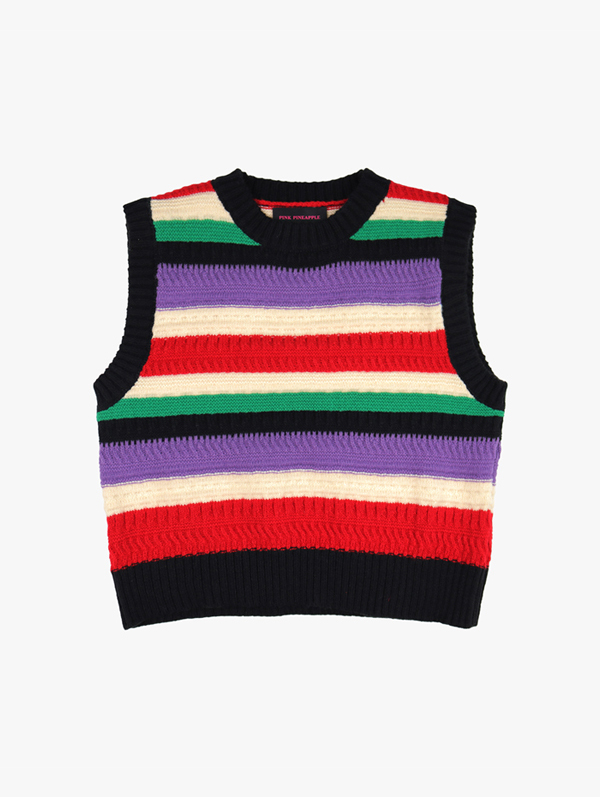 핑크파인애플 COZY STRIPE VEST BLACK PINKPINEAPPLE