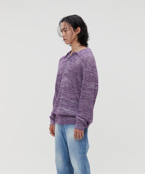 품목: 스카시 투톤 반오픈 단추 카라 니트 (퍼플)