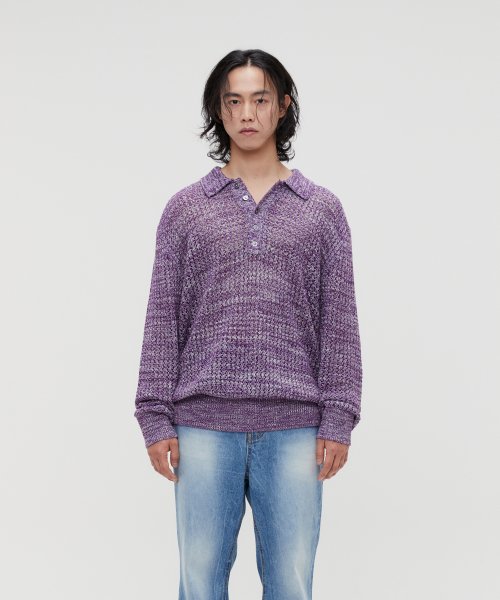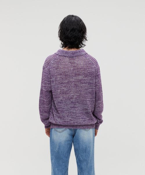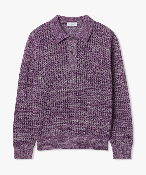 르마드 스카시 투톤 반오픈 단추 카라 니트 (퍼플)은 부드러운 촉감과 따뜻함으로 가을철 입기에 적합한 니트입니다.