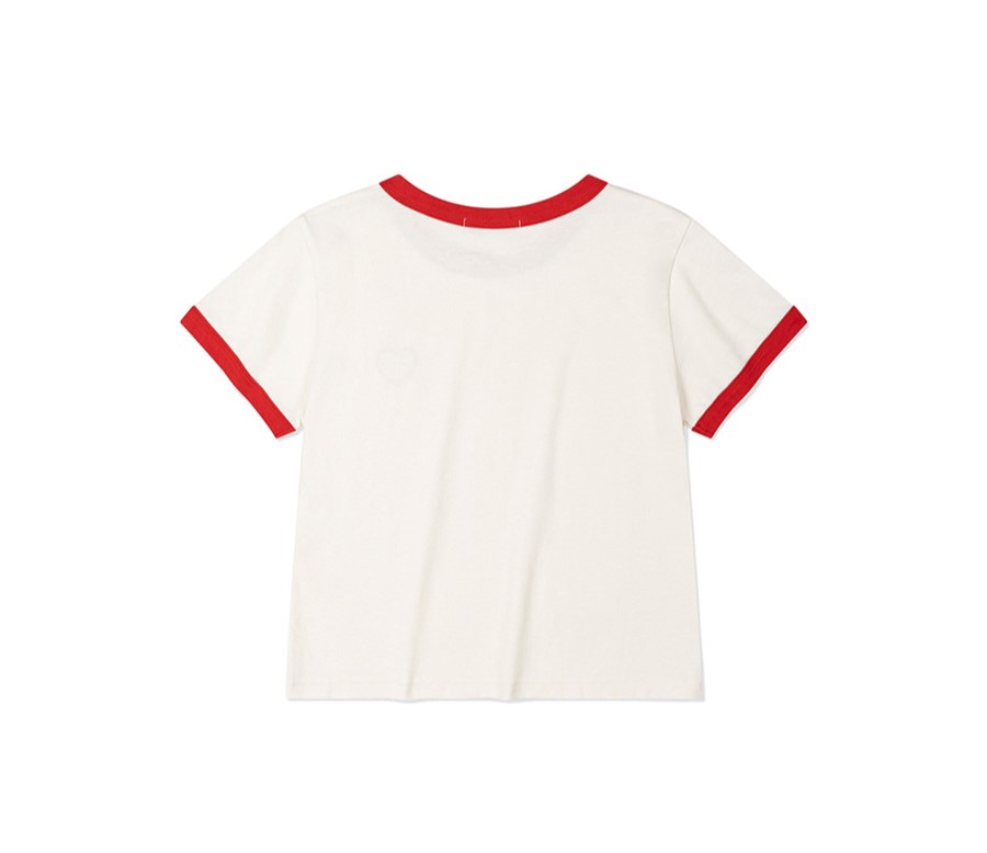 품목: 하트 엠블럼 링거 반팔티 레드 (Heart Emblem Ringer Tee Red)