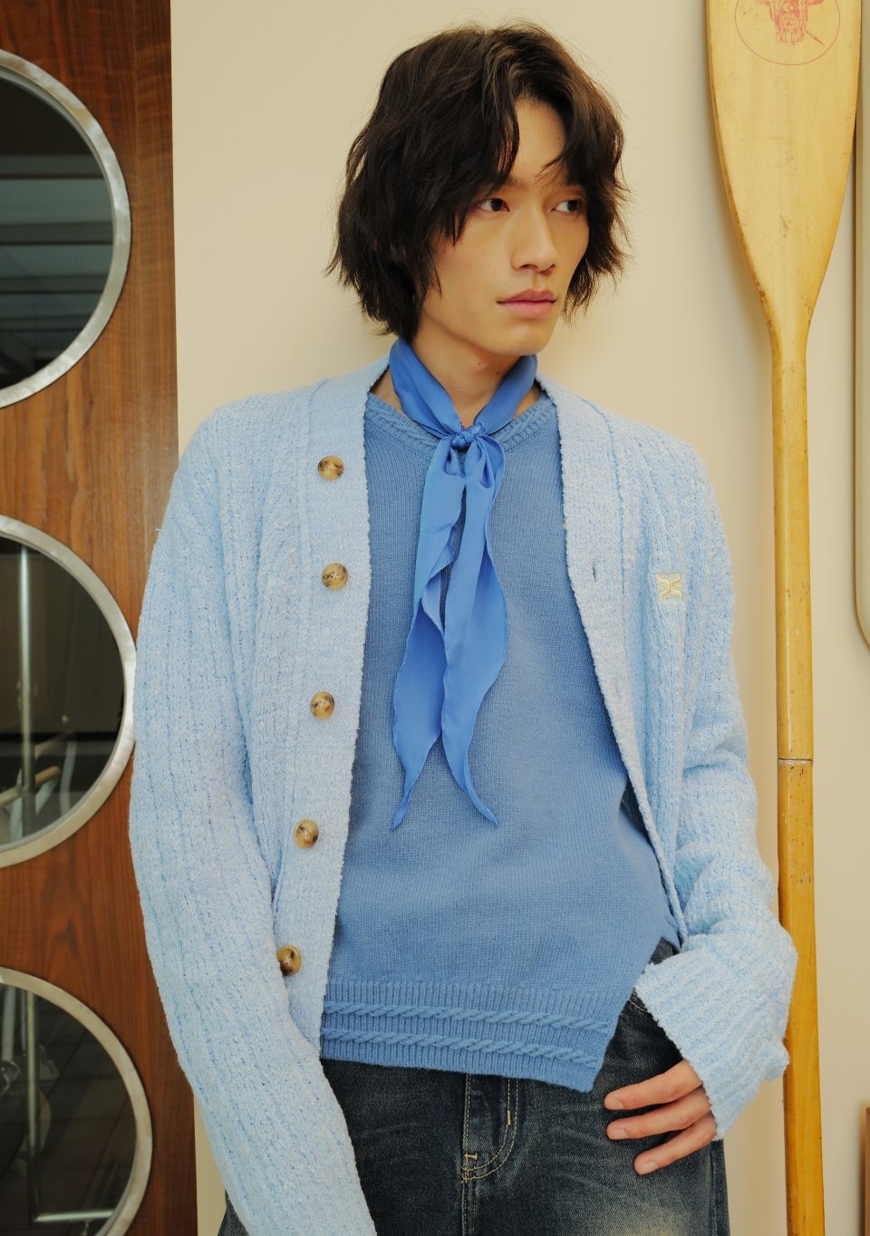나는 SOLO <나는 솔로> 150회 이이경 가디건 옷 패션 브랜드 정보 - 세터 파로 오버 사이즈 울 블렌드 가디건 베이비 블루: 편안하면서도 세련된 스타일 연출