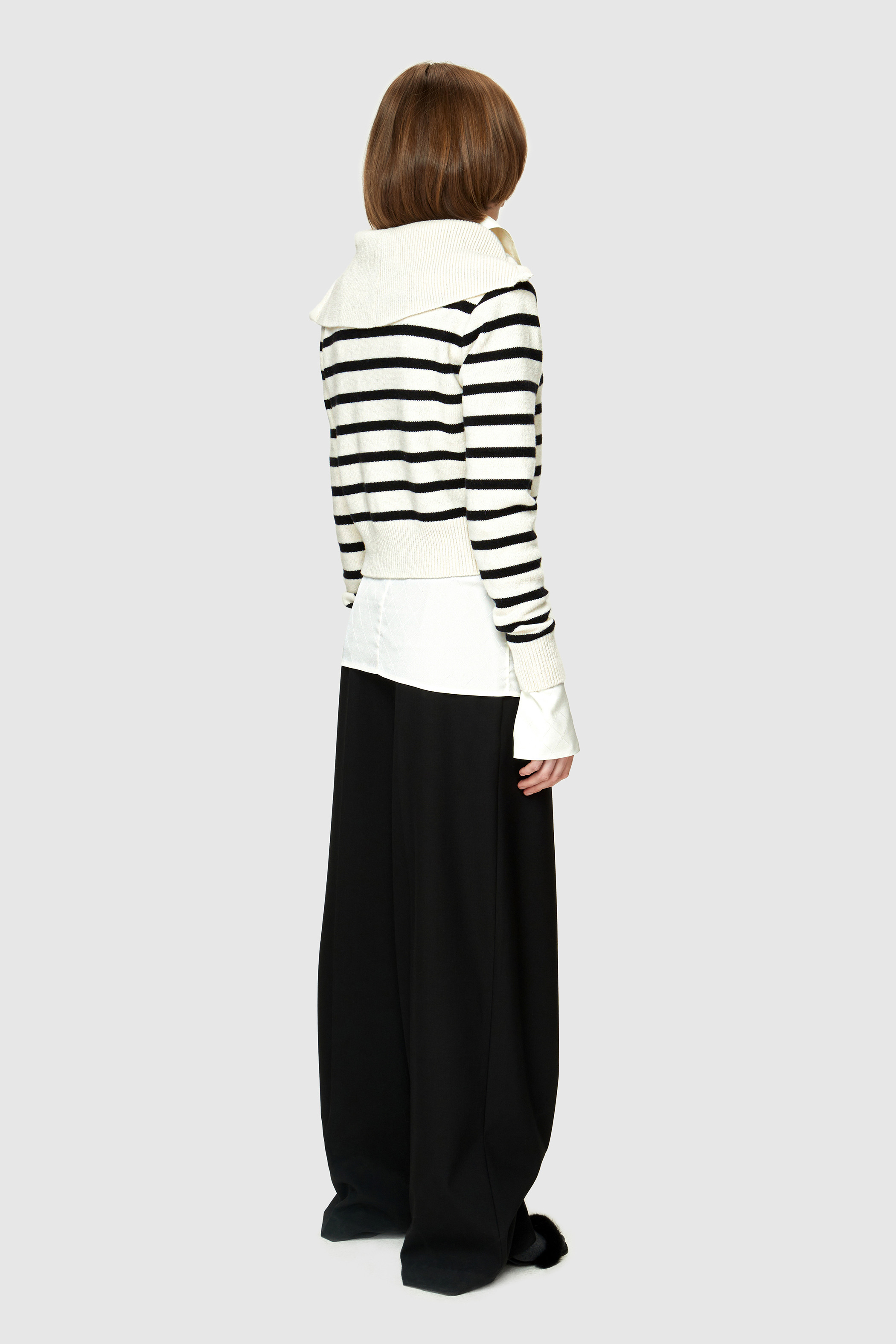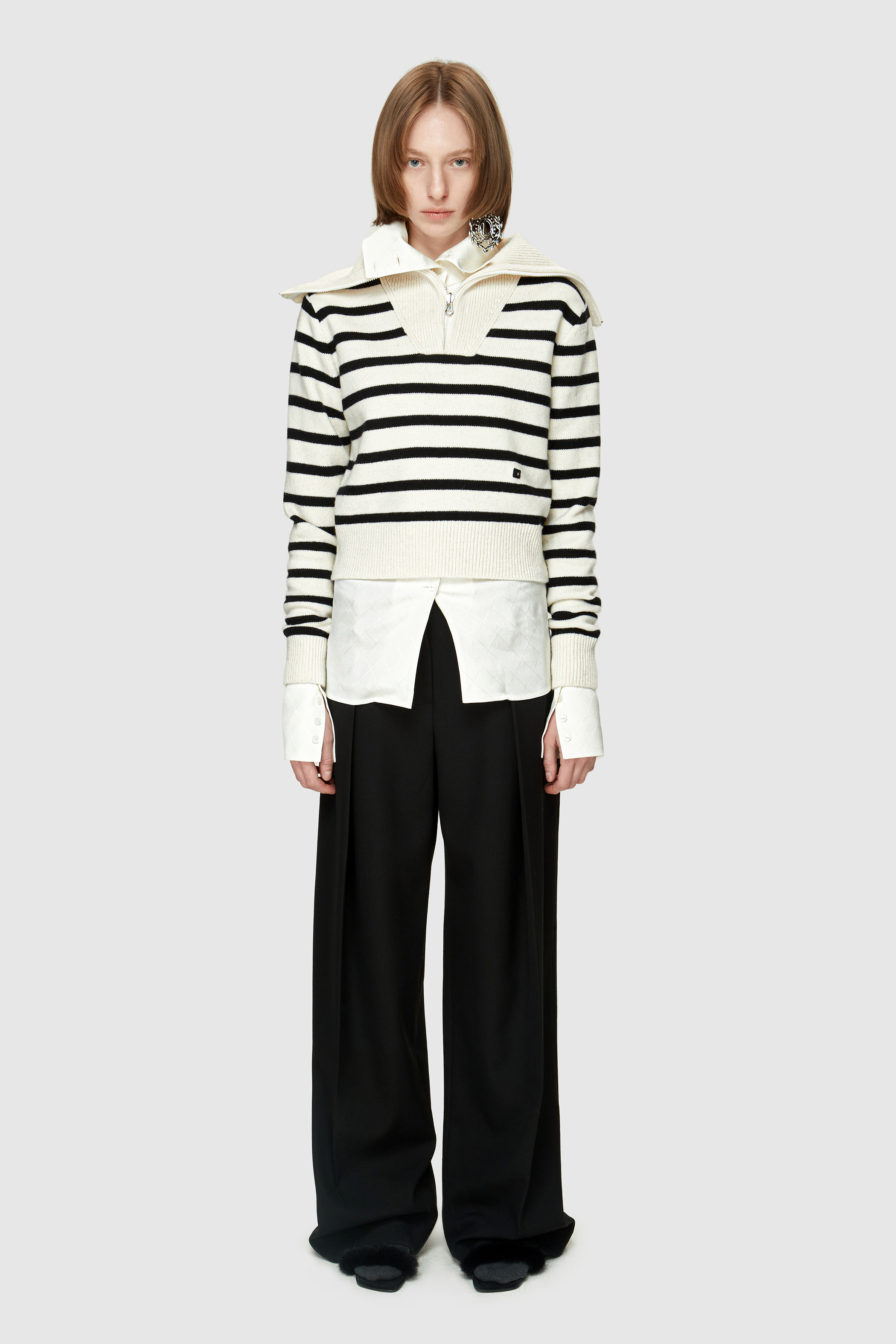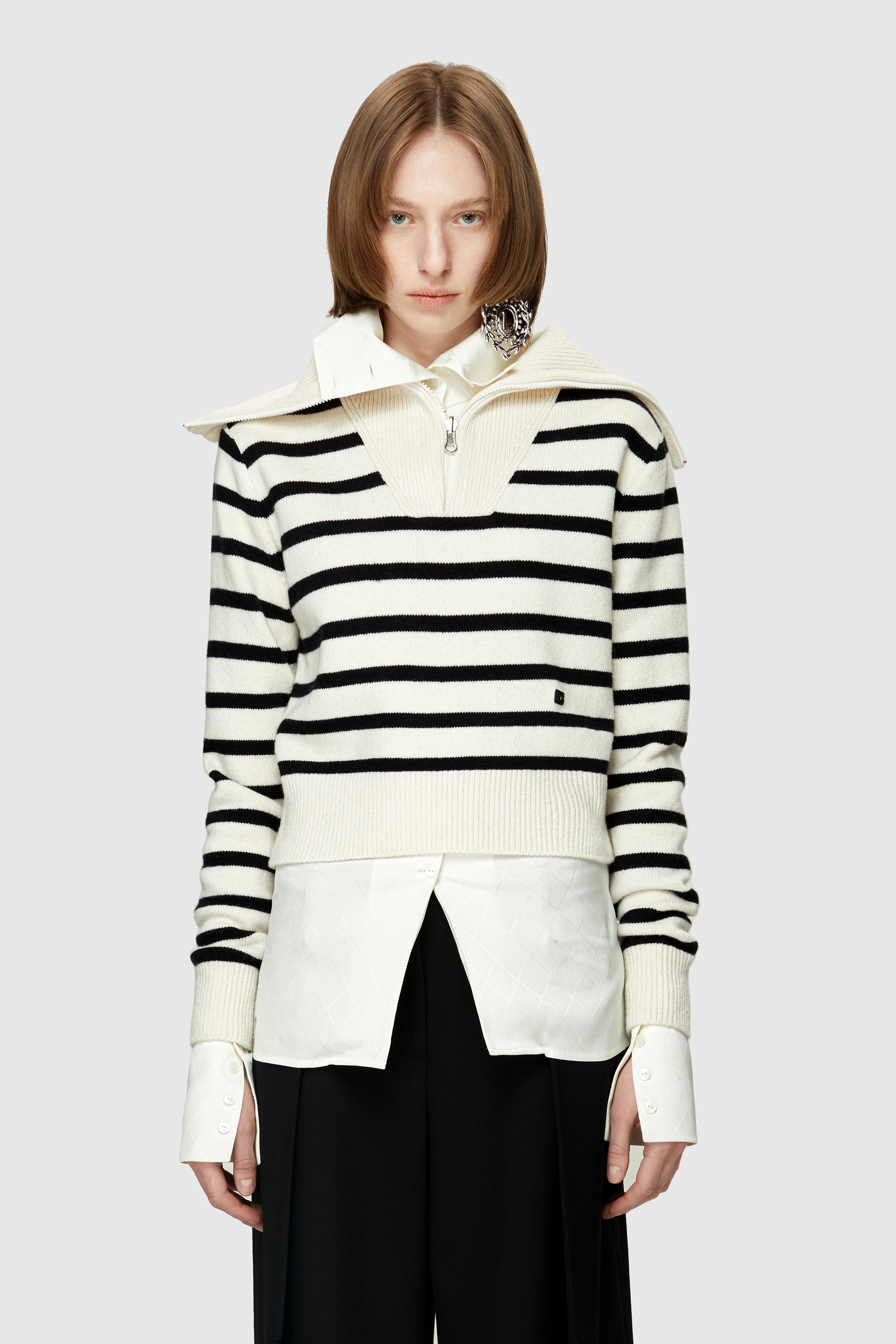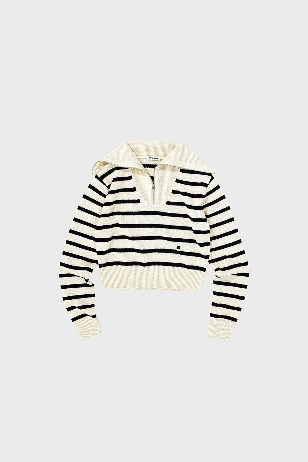 [LOW CLASSIC 로우클래식] STRIPE SAILOR ZIP-UP KNIT - IVORY