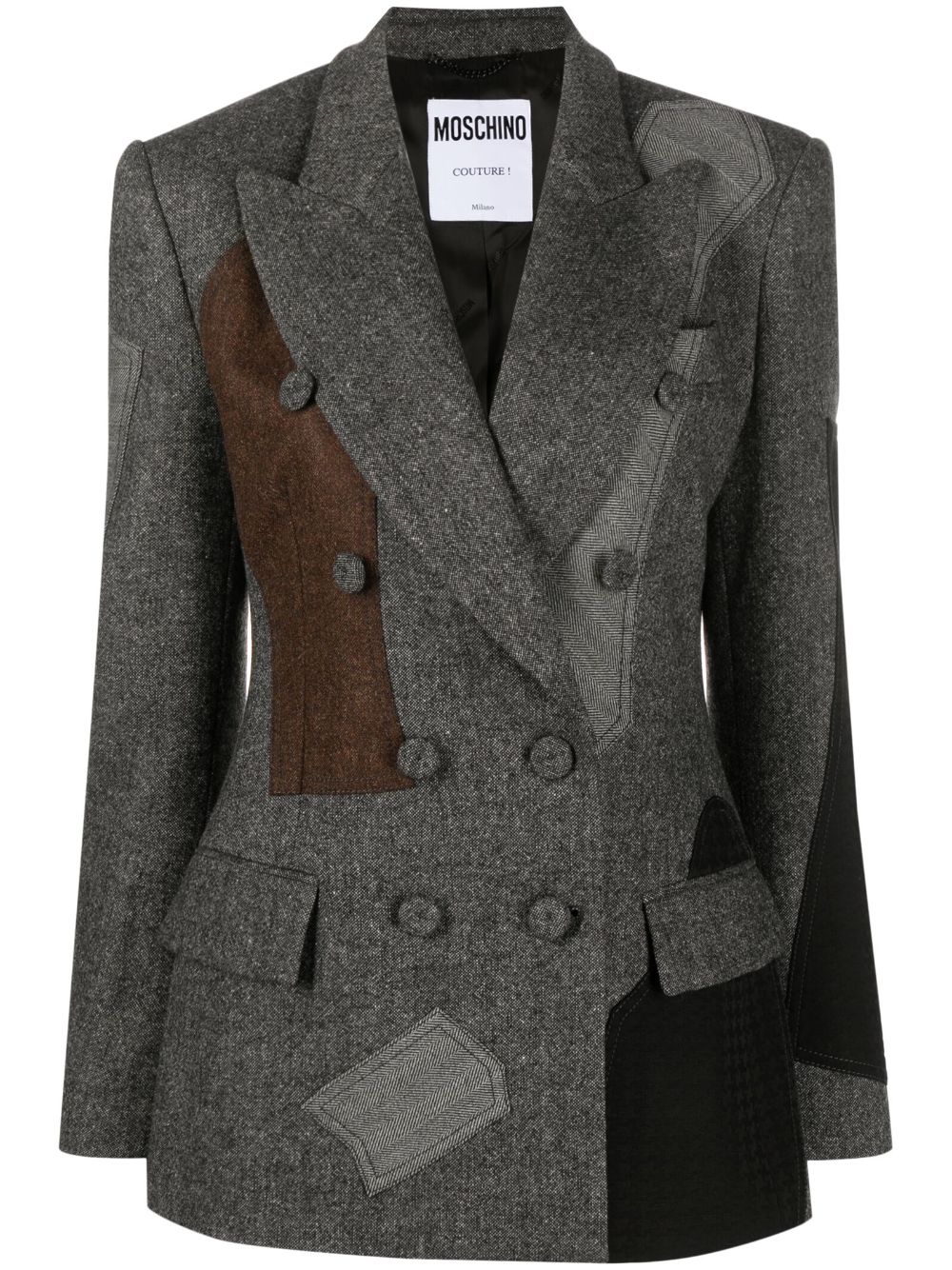 패치워크 더블 브레스트 블레이저는 모스키노의 인기 상품입니다.