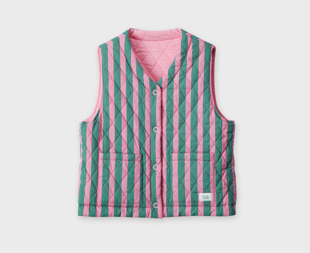 스내피커들 플러피 크루아상 리버시블 베스트를 스커트나 드레스와 함께 매치하여 여성스럽고 귀여운 스타일을 연출하세요.