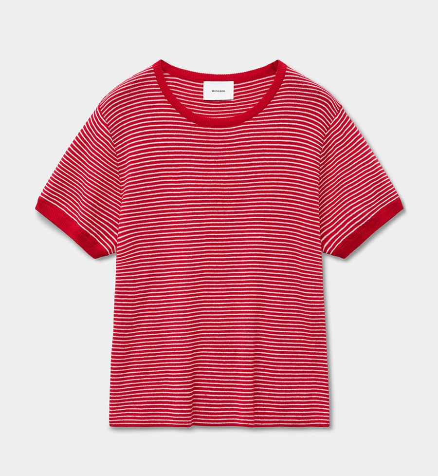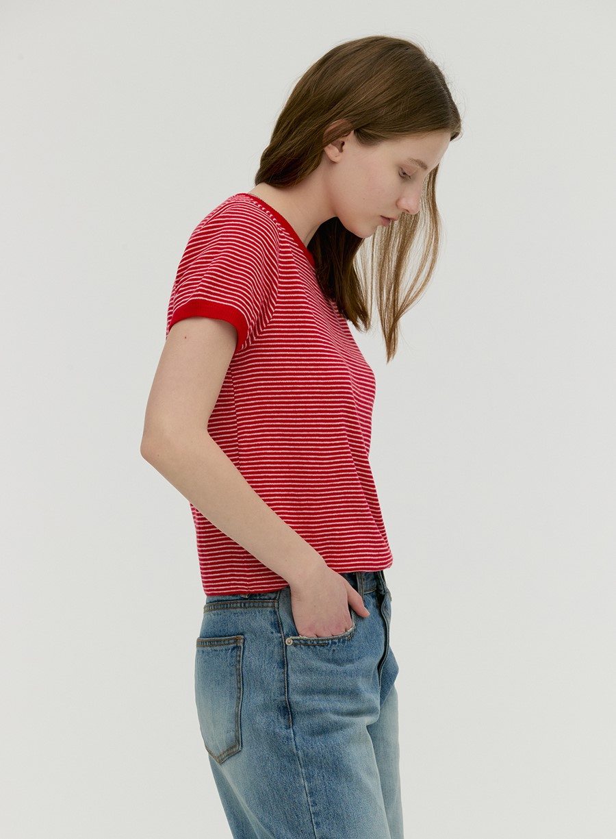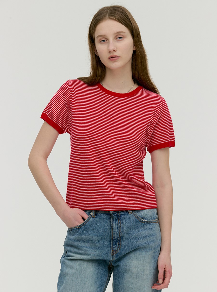 품목: 골지 스트라이프 반팔 니트 레드