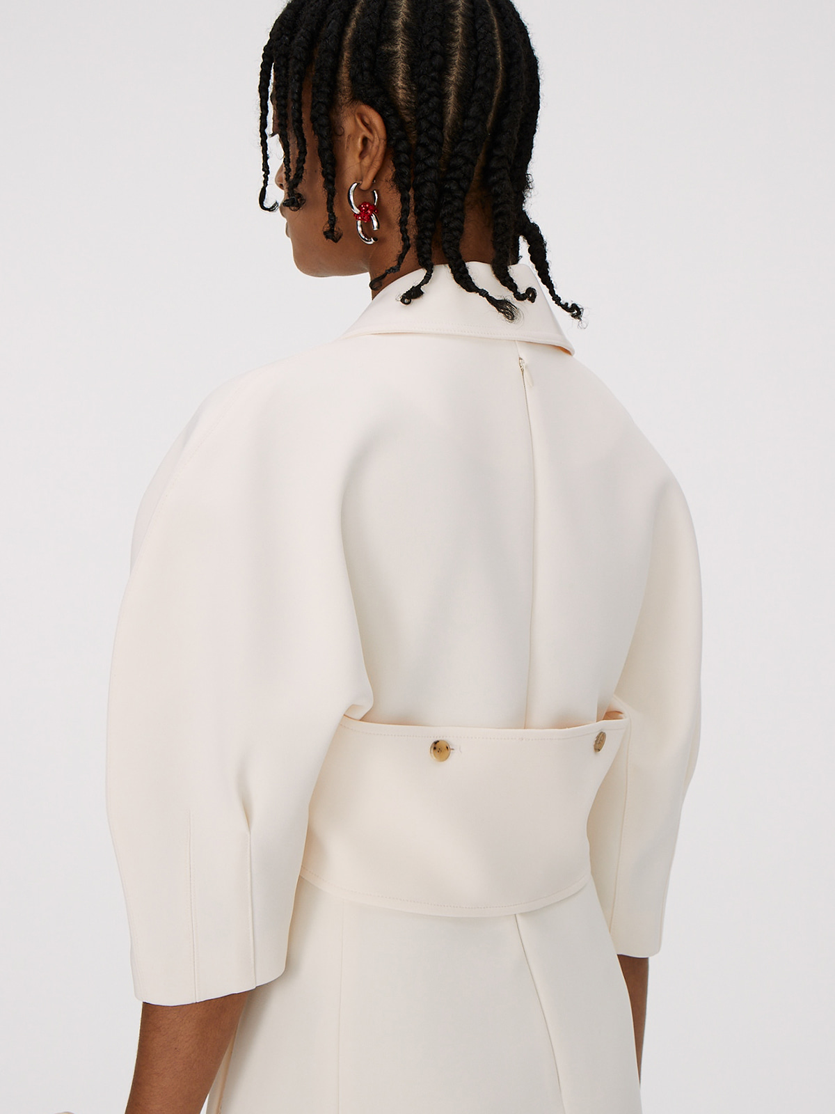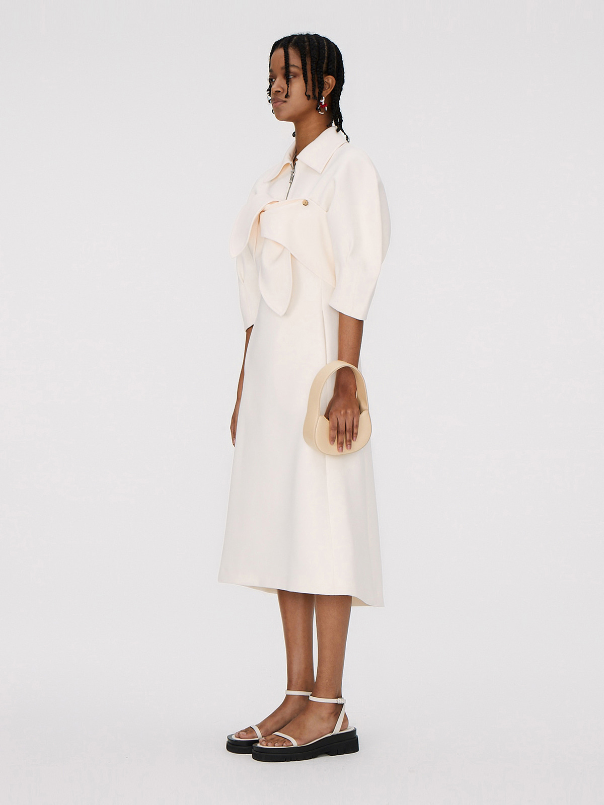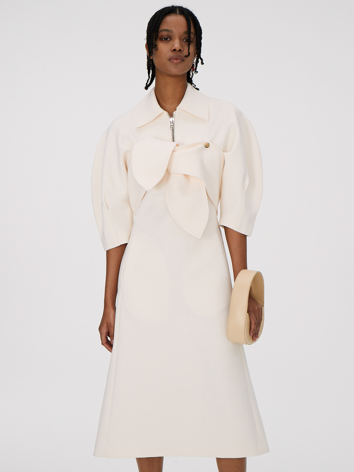 포인트가 되는 지퍼 칼라와 리본 디테일