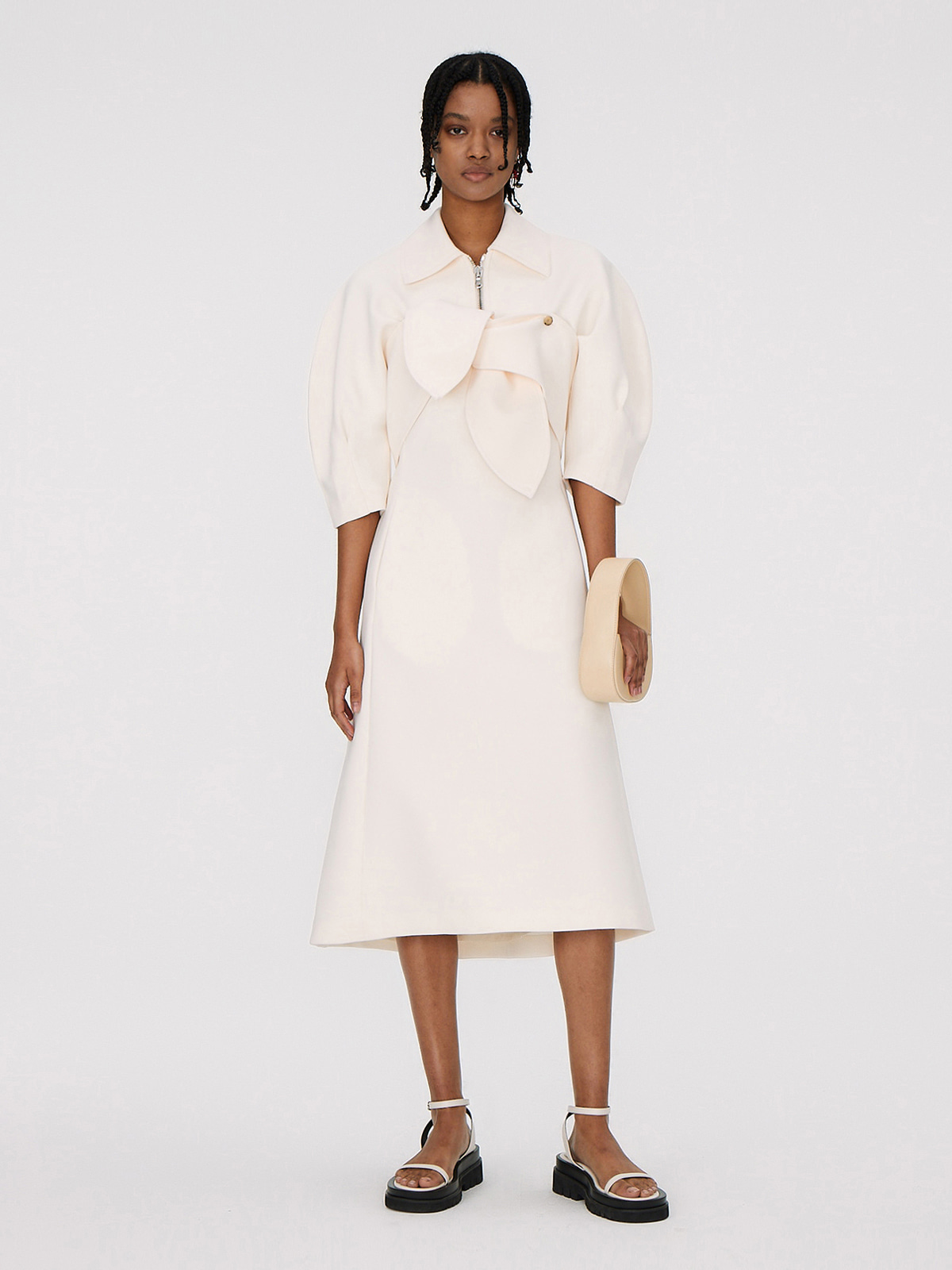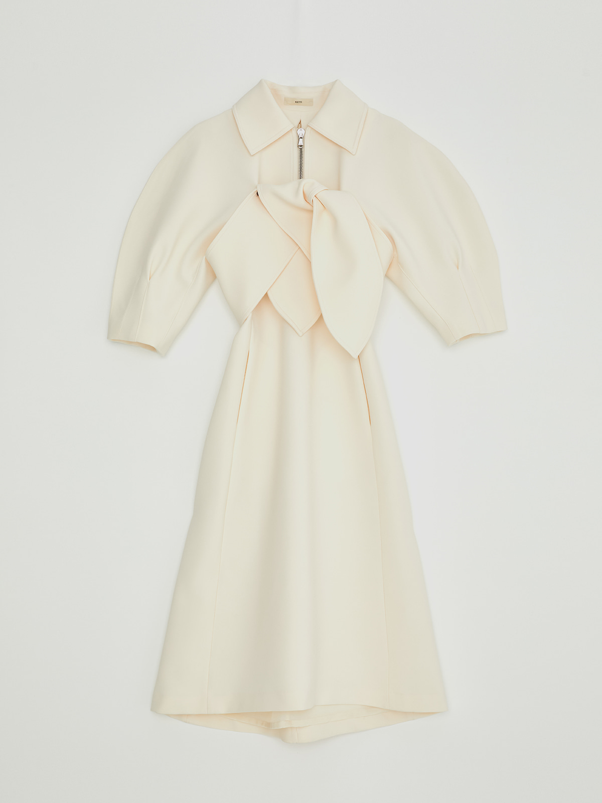 [RECTO 렉토] ZIP COLLAR RIBBON DETAIL SPORTS DRESS (IVORY)