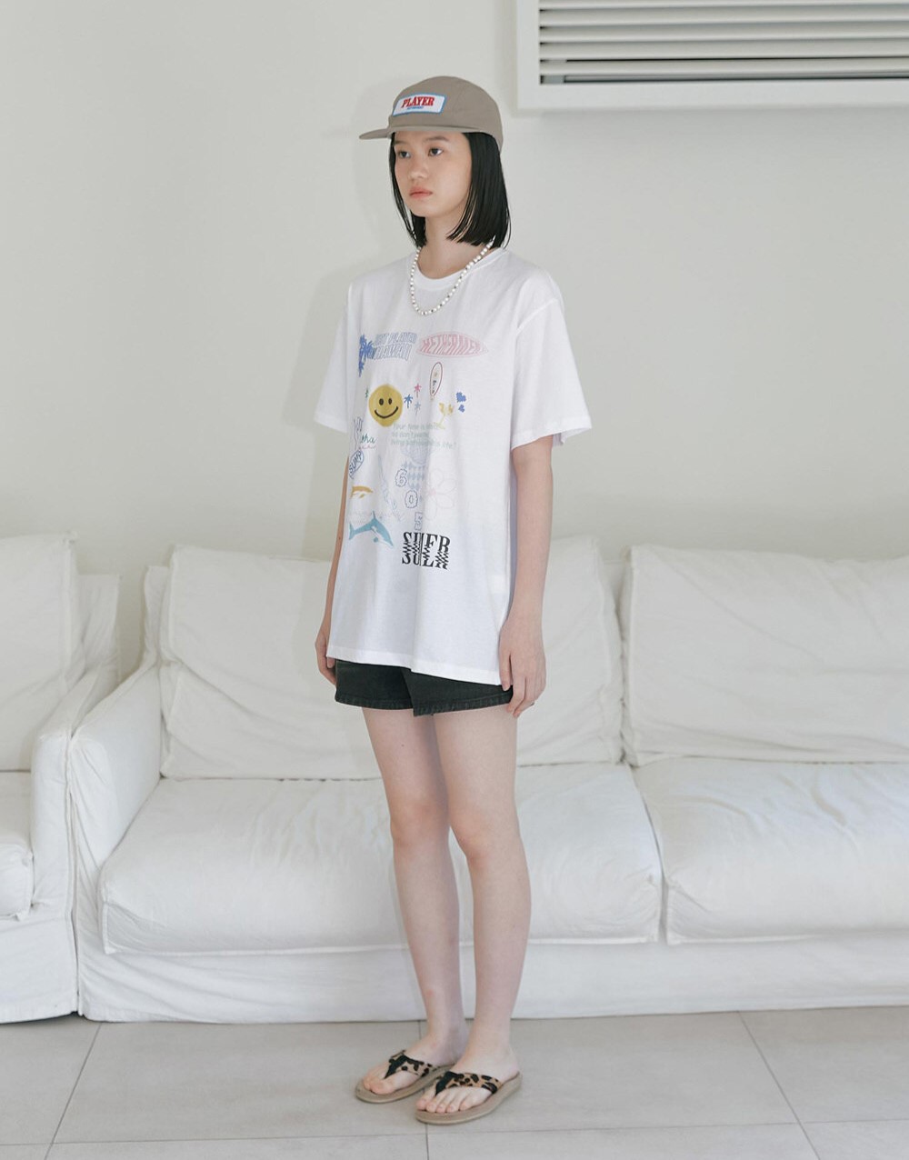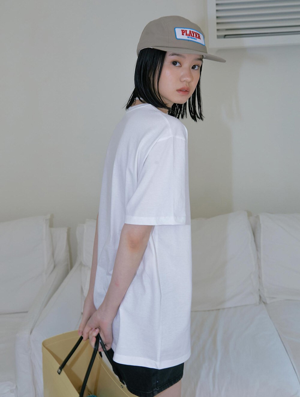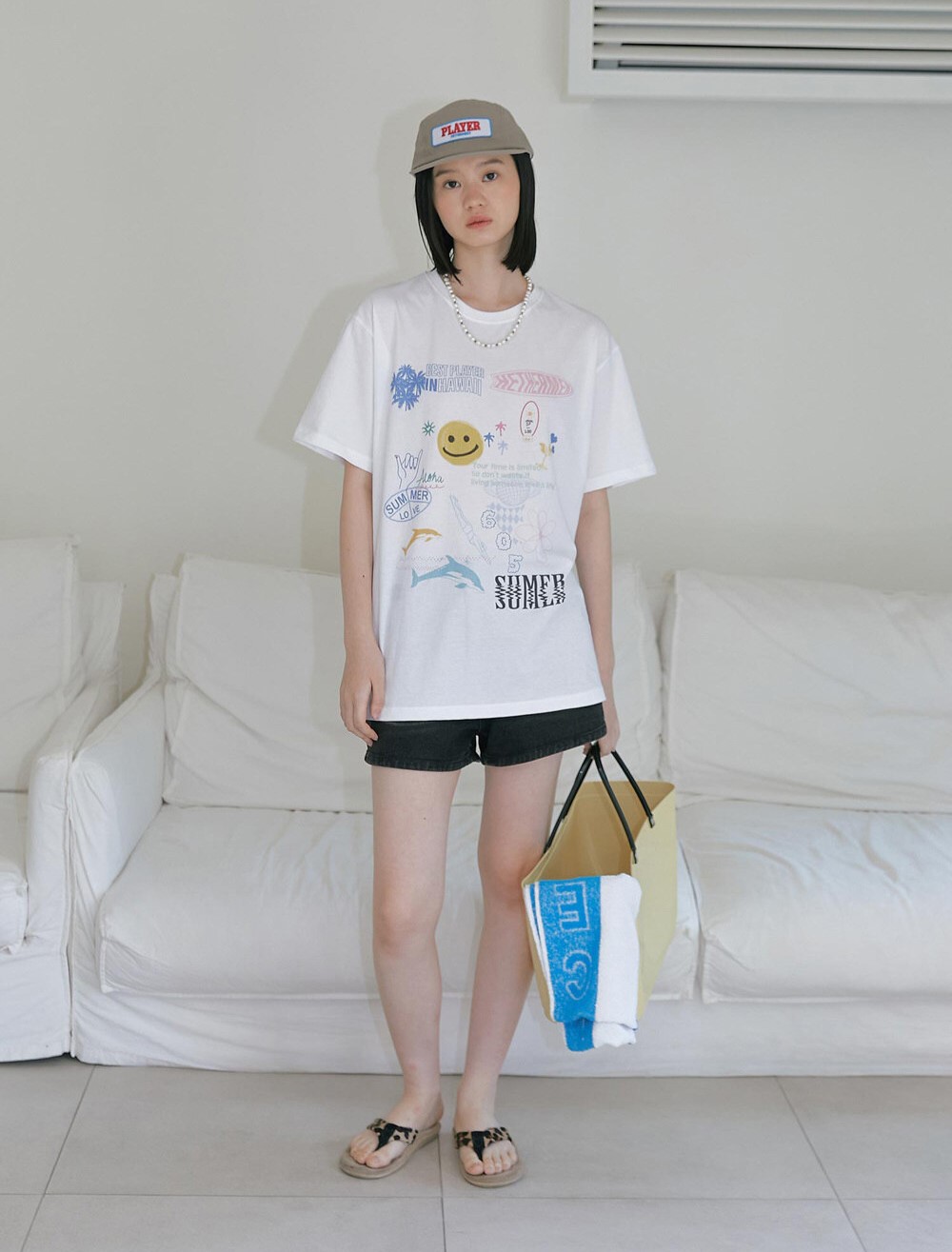 베이직하면서도 트렌디한 화이트 색상으로 다양한 스타일링에 활용할 수 있으며, 봄 여름철에 착용하기 적합합니다.