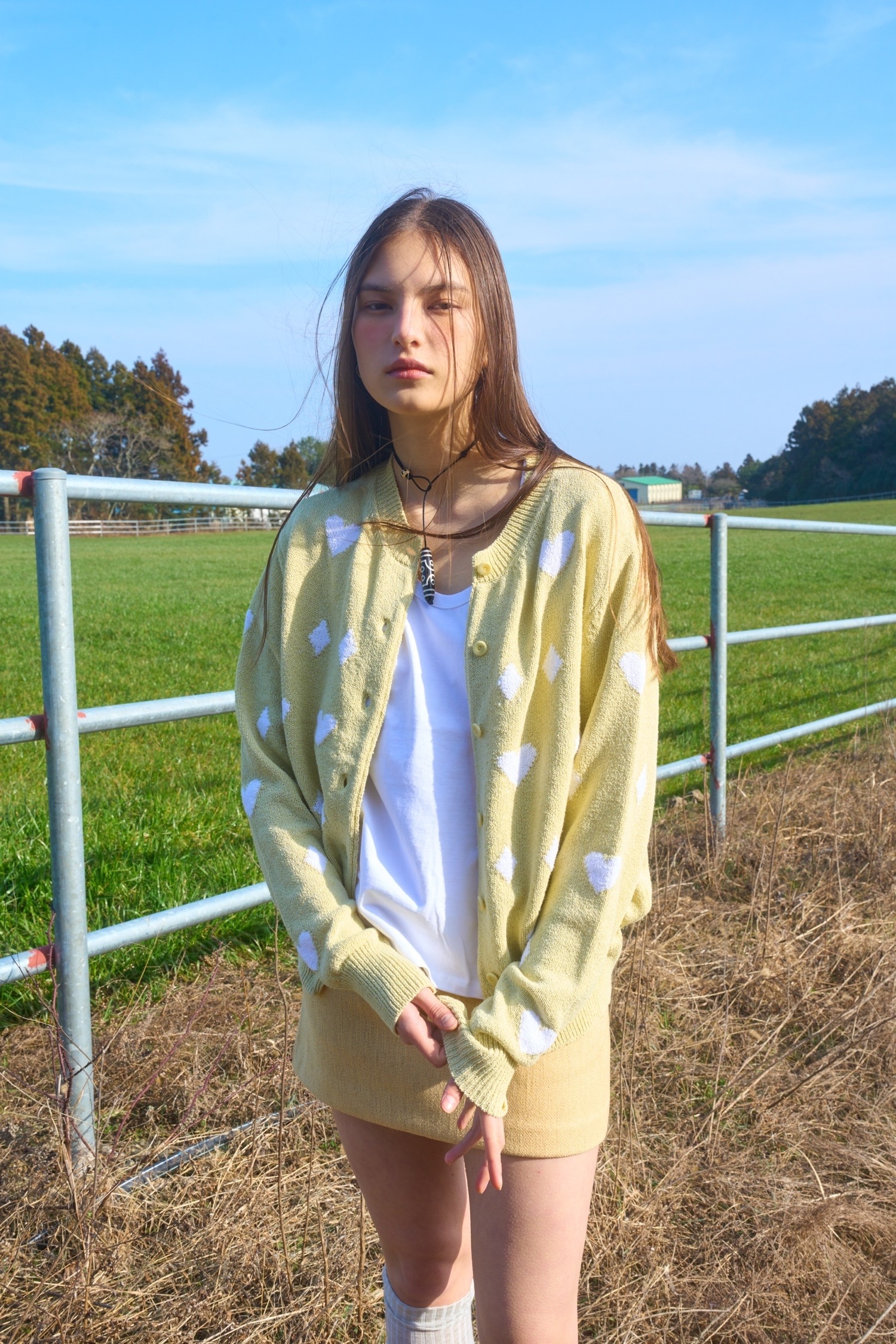 OURSAALTY HEART DIA CARDIGAN BUTTER를 심플한 백티셔츠와 청바지, 스니커즈와 함께 매치하여 캐주얼하면서도 세련된 스타일을 연출하세요. 모자와 스키니를 추가하여 포인트를 더해도 좋습니다.