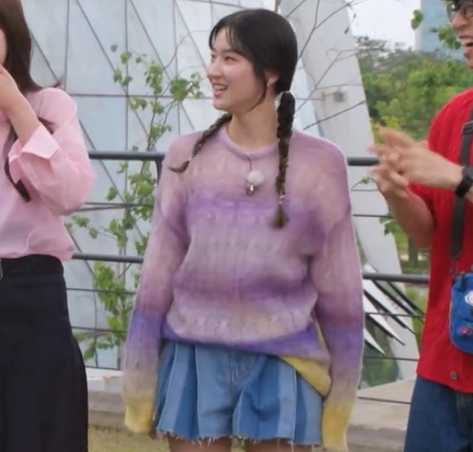 런닝맨 707회 박주현 니트 스웨터 옷 패션 브랜드 정보 - 에트로 데그라데 케이블 니트 니트 스웨터: 세련된 컬러 그라데이션과 섬세한 케이블 니트로 눈길을 사로잡는 아이템