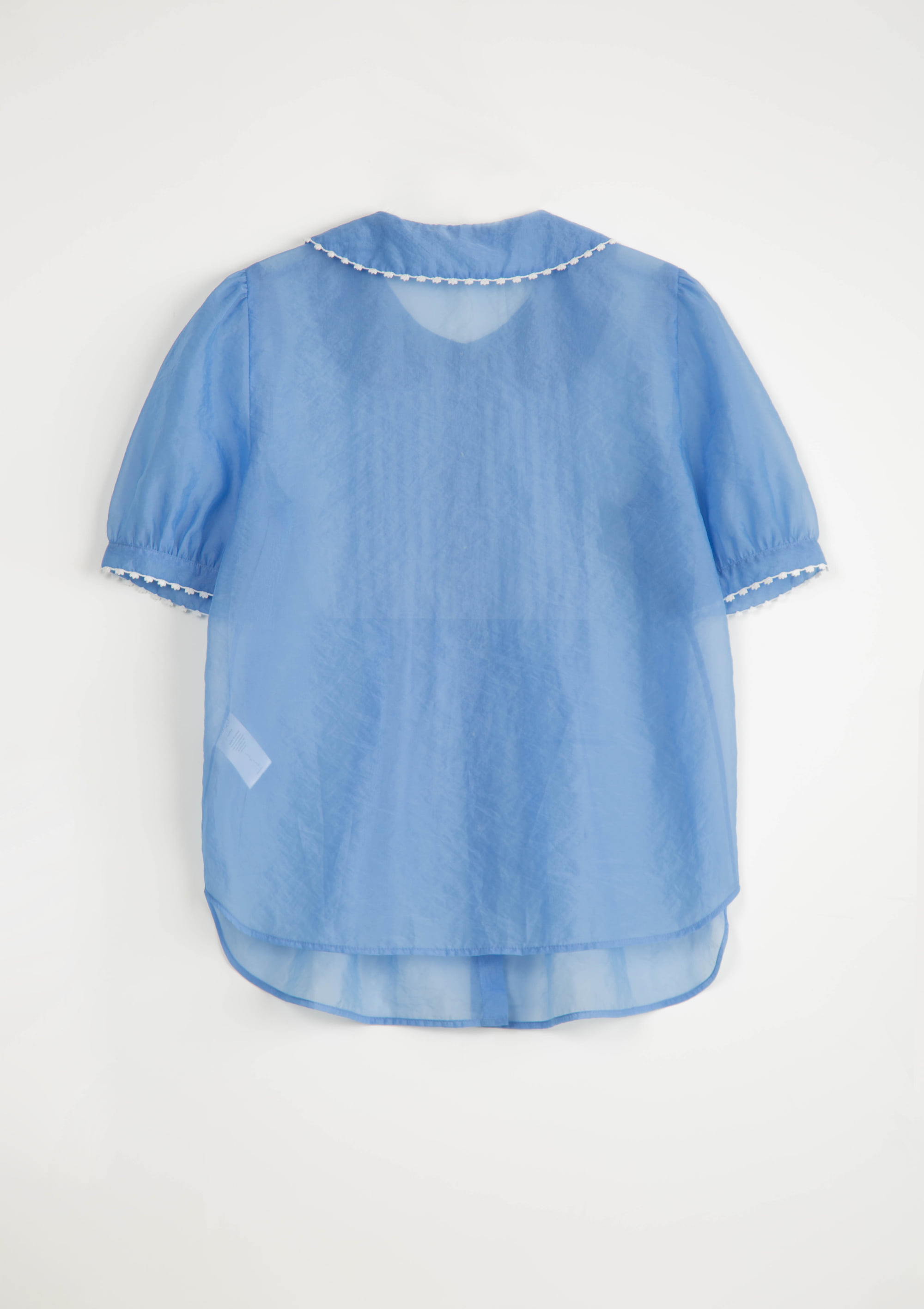 [2차 리오더] Mused Pintuck Hand Emb Blouse - Sheer Blue