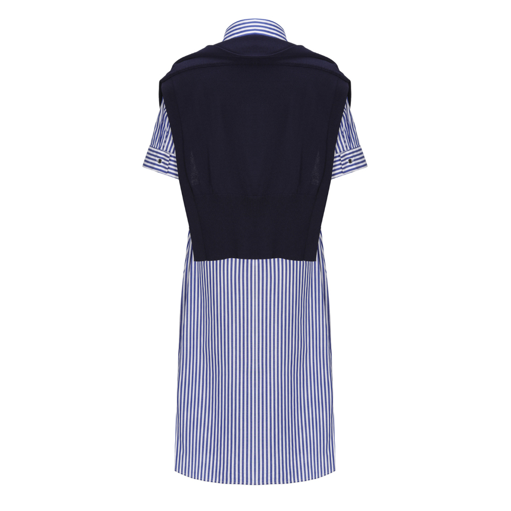 발렌시아 어부바 니트 숄 스트라이프 벨트 원피스 244OO75 블루는 해안 매력과 편안한 세련미를 뽐내는 다재다능한 옷장 필수품입니다.