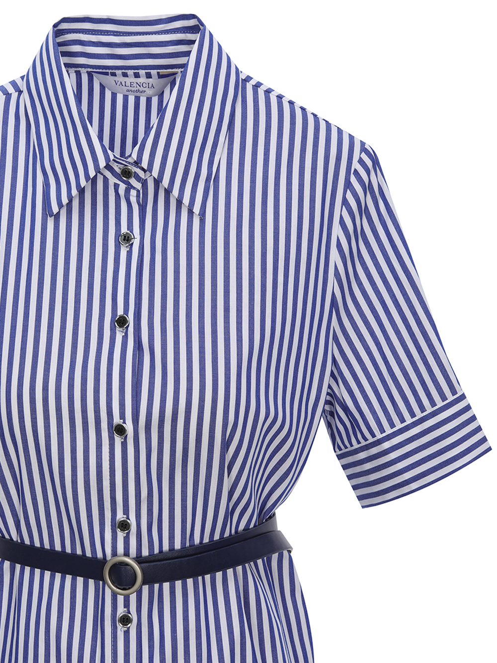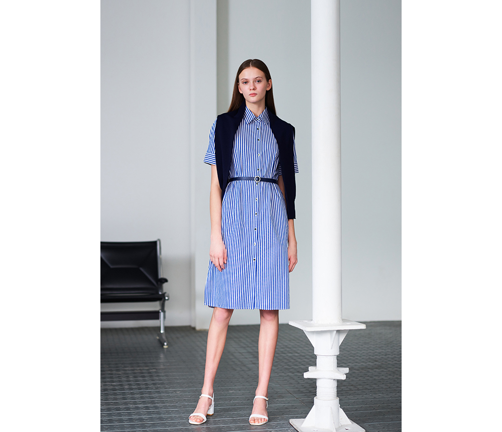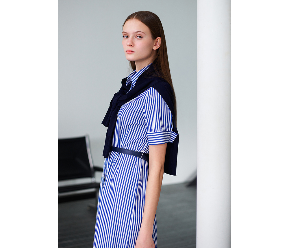 발렌시아 어부바 니트 숄 스트라이프 벨트 원피스 244OO75 블루에 스트랩 샌들과 챙넓은 모자를 매치하여 해안 시크 스타일을 한층 더 높여보세요.
