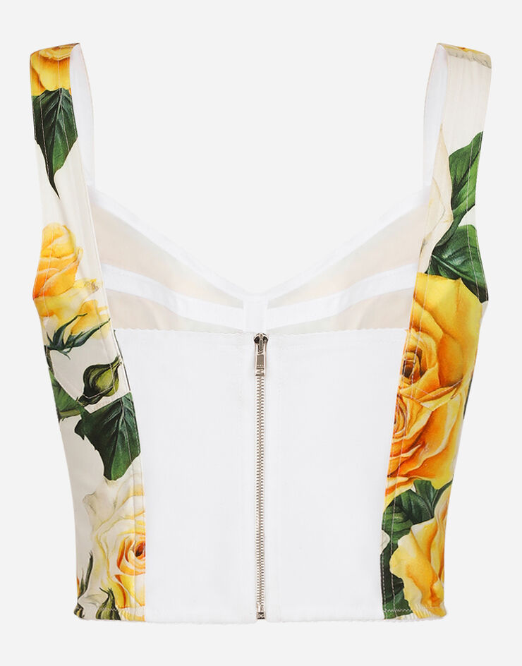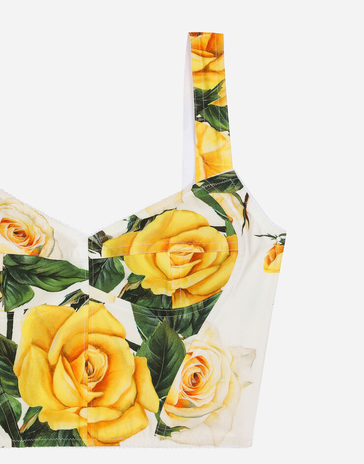 Cotton corset top with yellow rose print in Print for Women | Dolce&Gabbana®