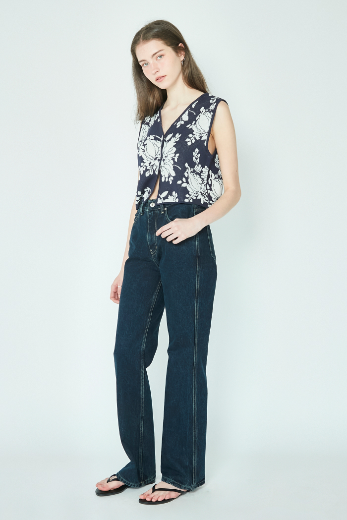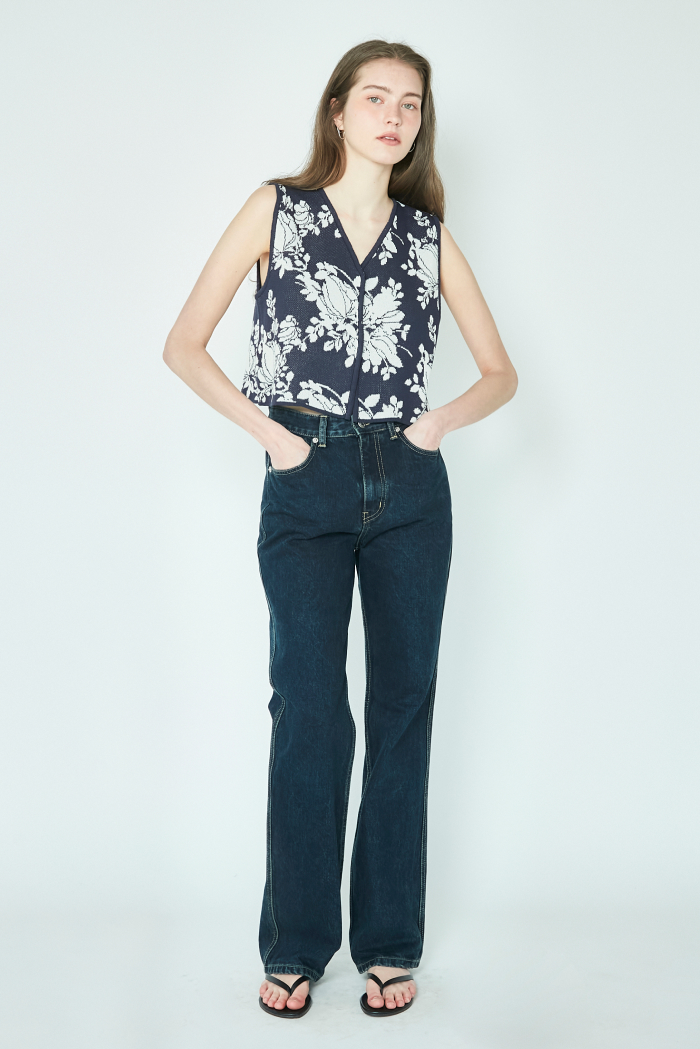 WMM스튜디오 Summer Flower Jacquard Vest를 탱크탑이나 린넨 셔츠와 함께 매치하여 여름 데이트룩을 완성하세요.