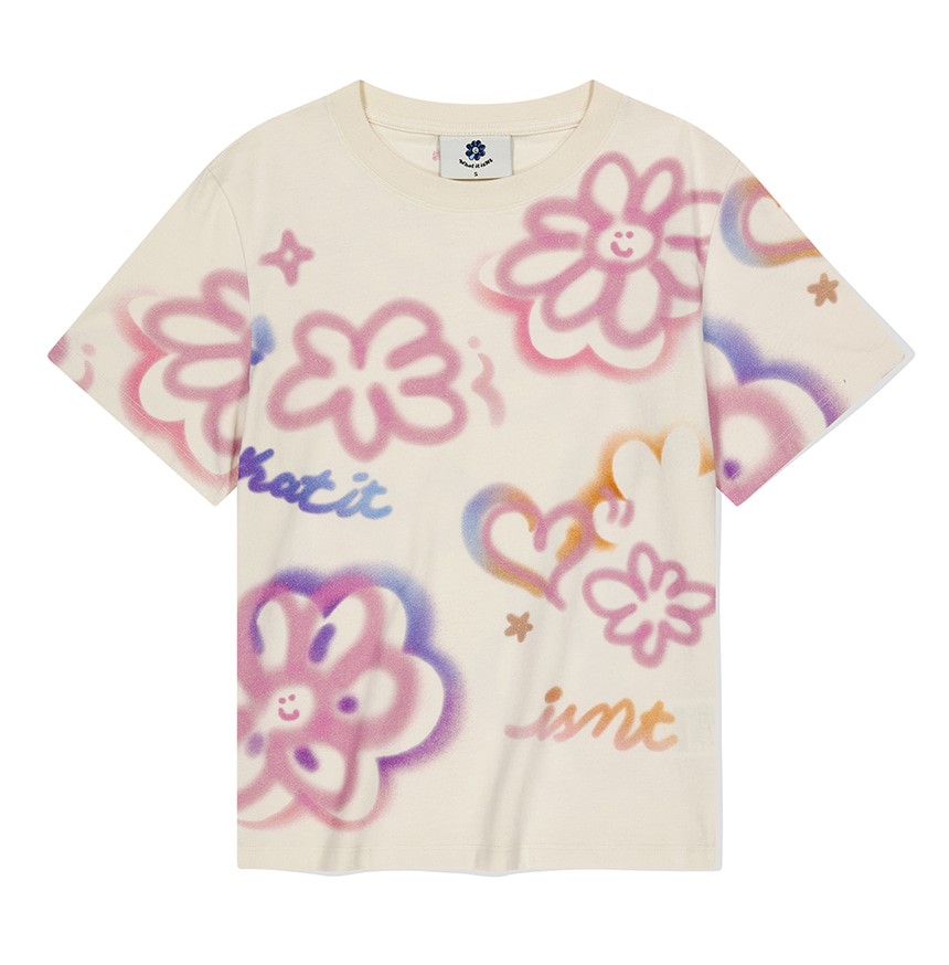 우먼스 플로리 패턴 반팔 티셔츠 크림은 온라인 및 일부 와릿이즌 매장에서 구매 가능합니다.
