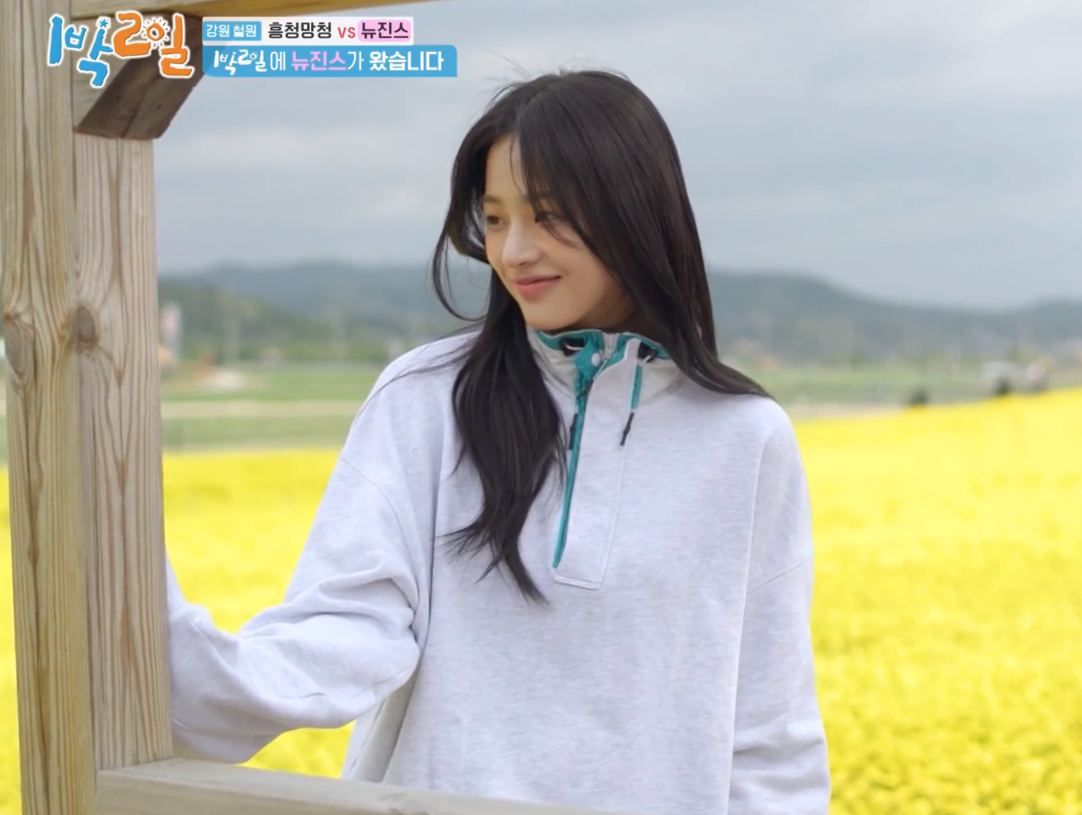 1박 2일 시즌4 230회 뉴진스 민지 하프 집업 스웨트셔츠 옷 패션 브랜드 정보 - 언어FFECTED 스탠드 칼라 반지퍼 스웨트셔츠: 편안하고 스타일리시한 everyday 룩 연출