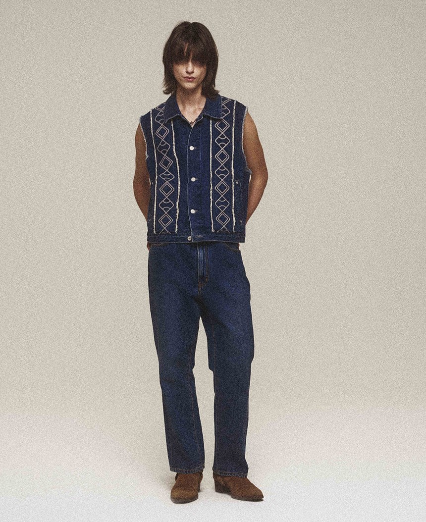 HALOGEN EL CASCADE DENIM VEST _ MID BLUE - oco, ocokorea, 오씨오, 오씨오코리아, 의류, 신발, 악세사리, 편집샵, OCO, 브랜드셀렉트샵OCO, LEE, 리플레인, 챔피온, 코르카