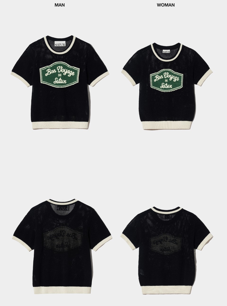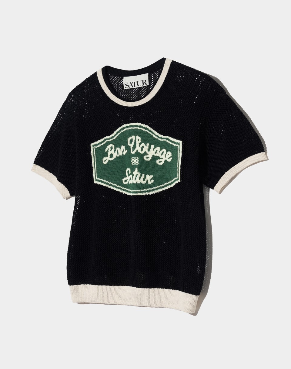 본보야지 아트워크 로고 크루 넥 하프 니트 오가닉 블랙