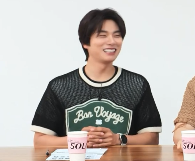 이이경이 '나는 솔로' 153회에서 착용한 Setter의 Bon Voyage Artwork Logo Crew Neck Half Knit는 독특한 아트워크 로고 디자인이 특징인 반팔 니트입니다.