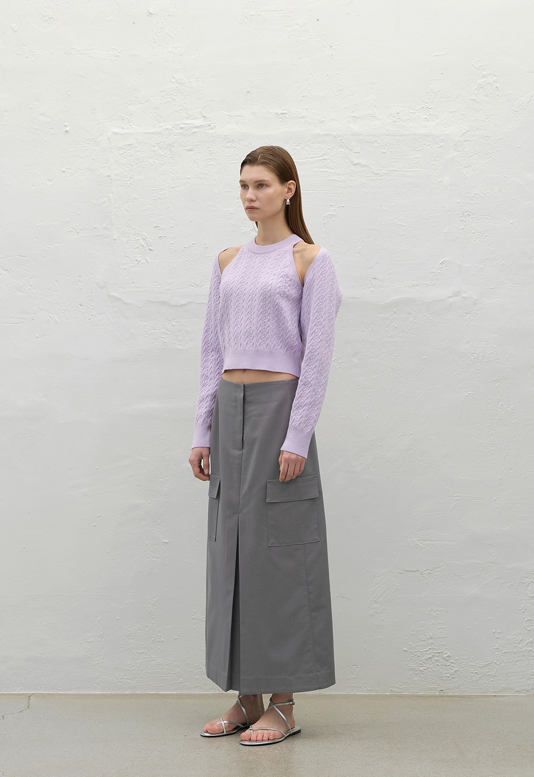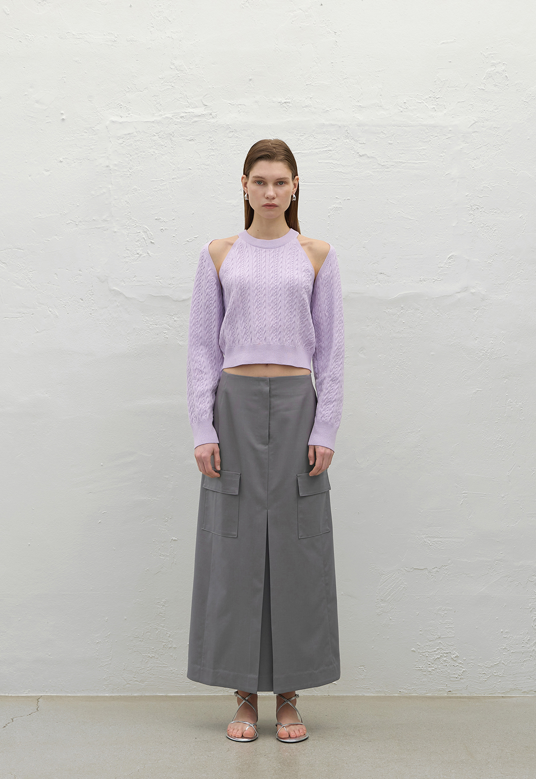 송해나가 '나는 솔로' 153회에서 착용한 아뜰리에나인의 MUSE CABLE KNIT TOP & BOLERO SET는 케이블 니트 디자인의 탑과 볼레로 세트입니다.