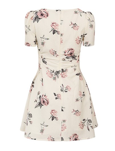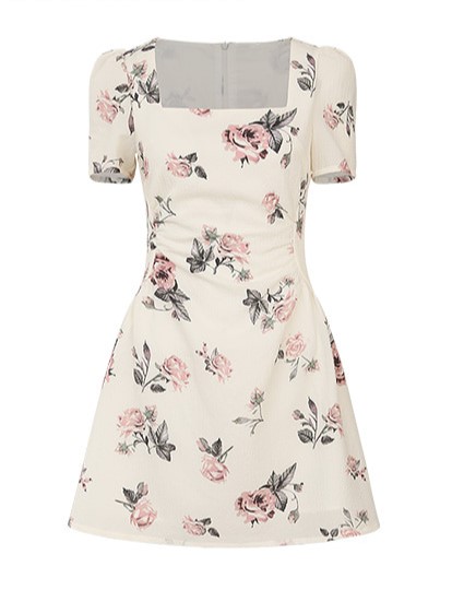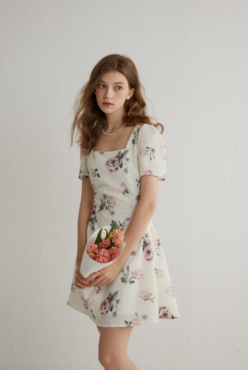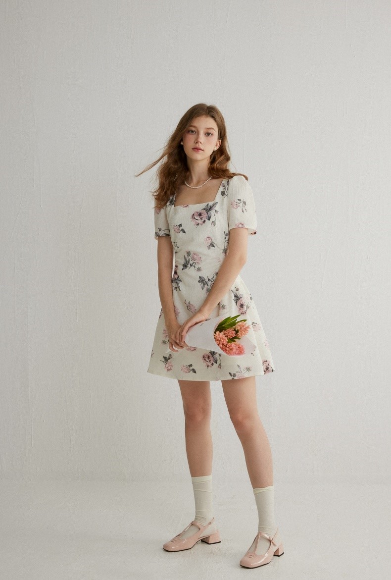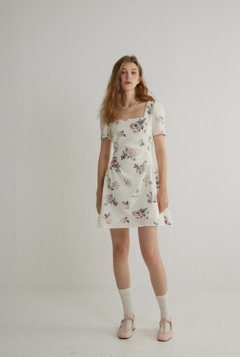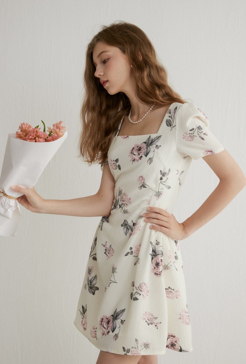 화사한 로즈 패턴이 특징인 이 원피스는 봄과 여름 시즌에 특히 잘 어울립니다.
