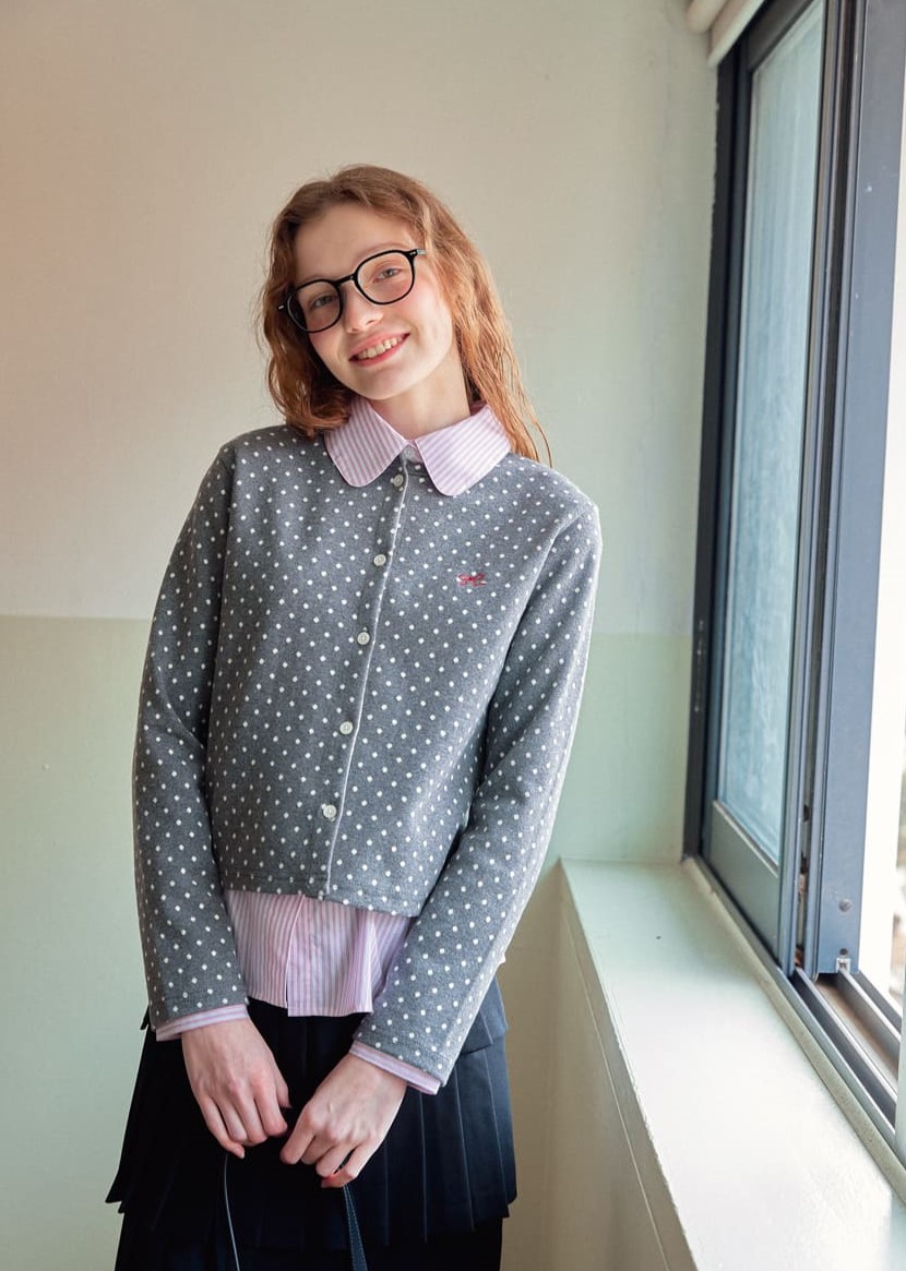 [11번가] RONRON DOT JACQUARD CARDIGAN GREY 124976