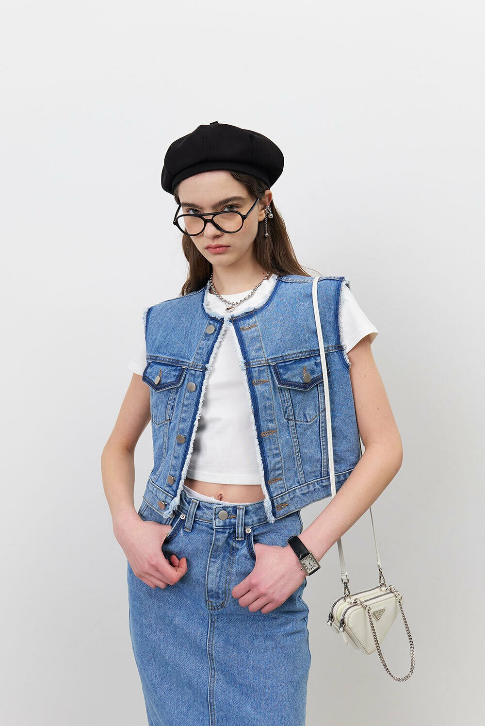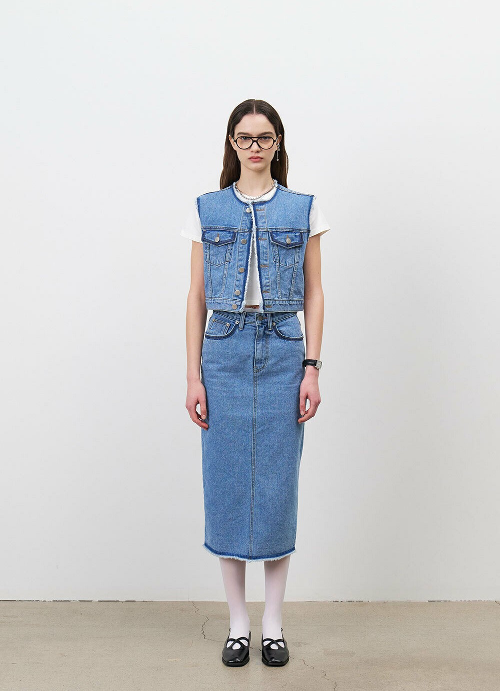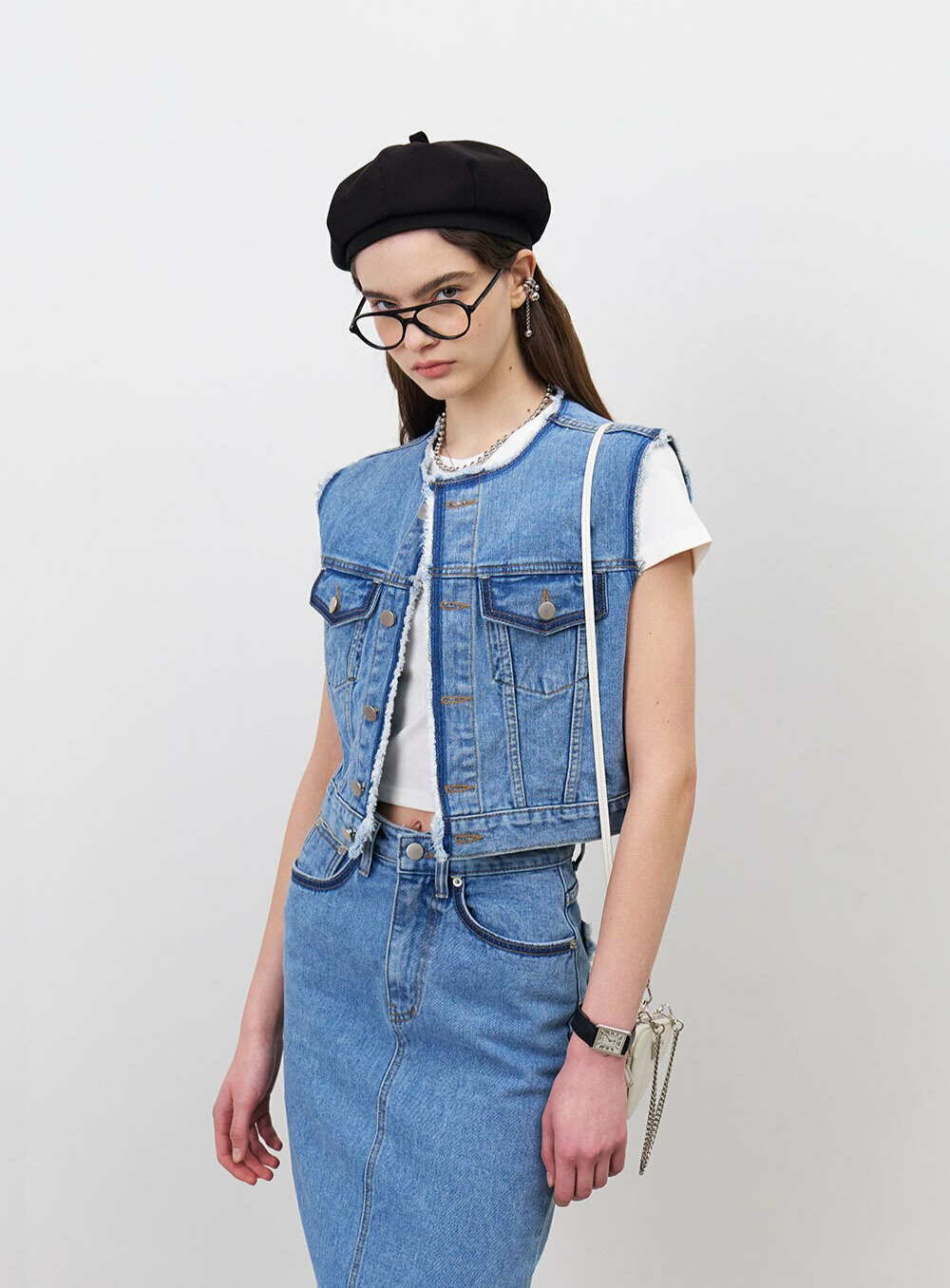 이 데님 베스트는 다양한 아이템과 레이어드하여 스타일링할 수 있습니다.