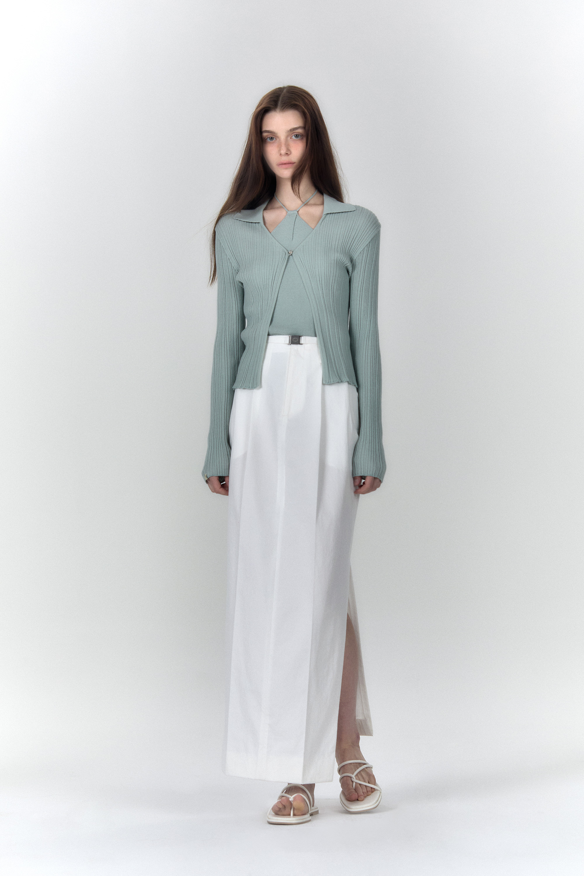 상품명: 카라 립드 가디건 & 키홀 홀터 넥 탑 세트