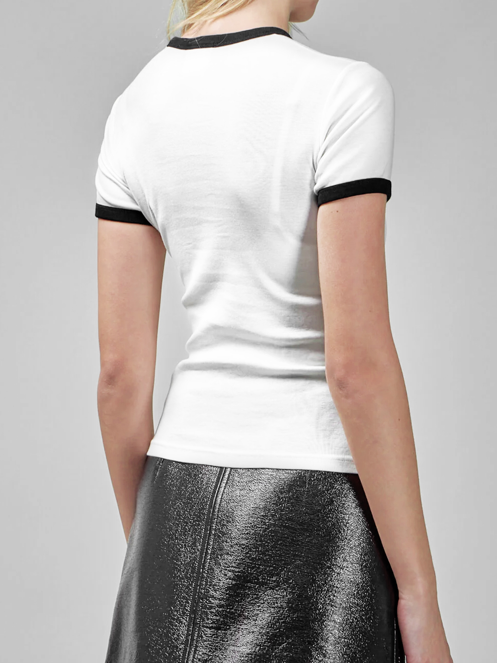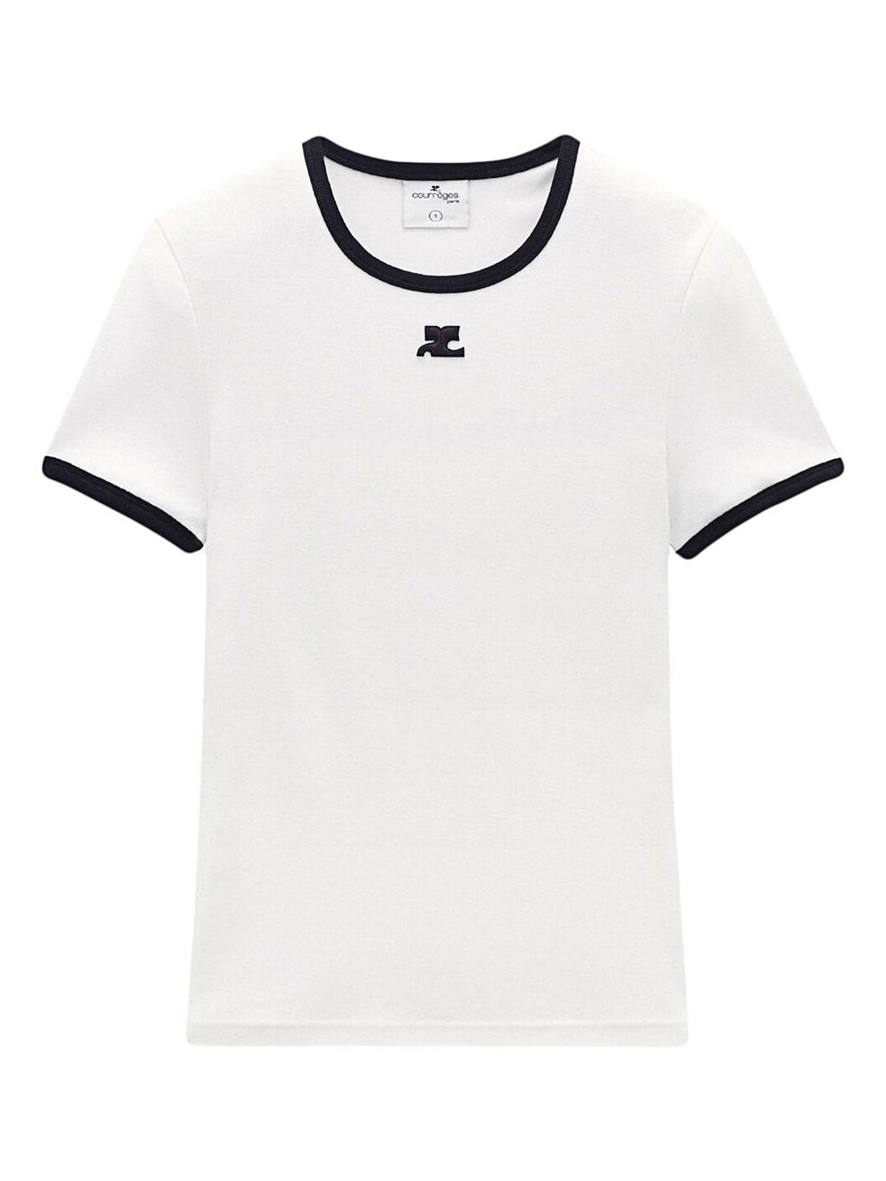 꾸레쥬 범피 콘트라스트 반팔 티셔츠 화이트 블랙