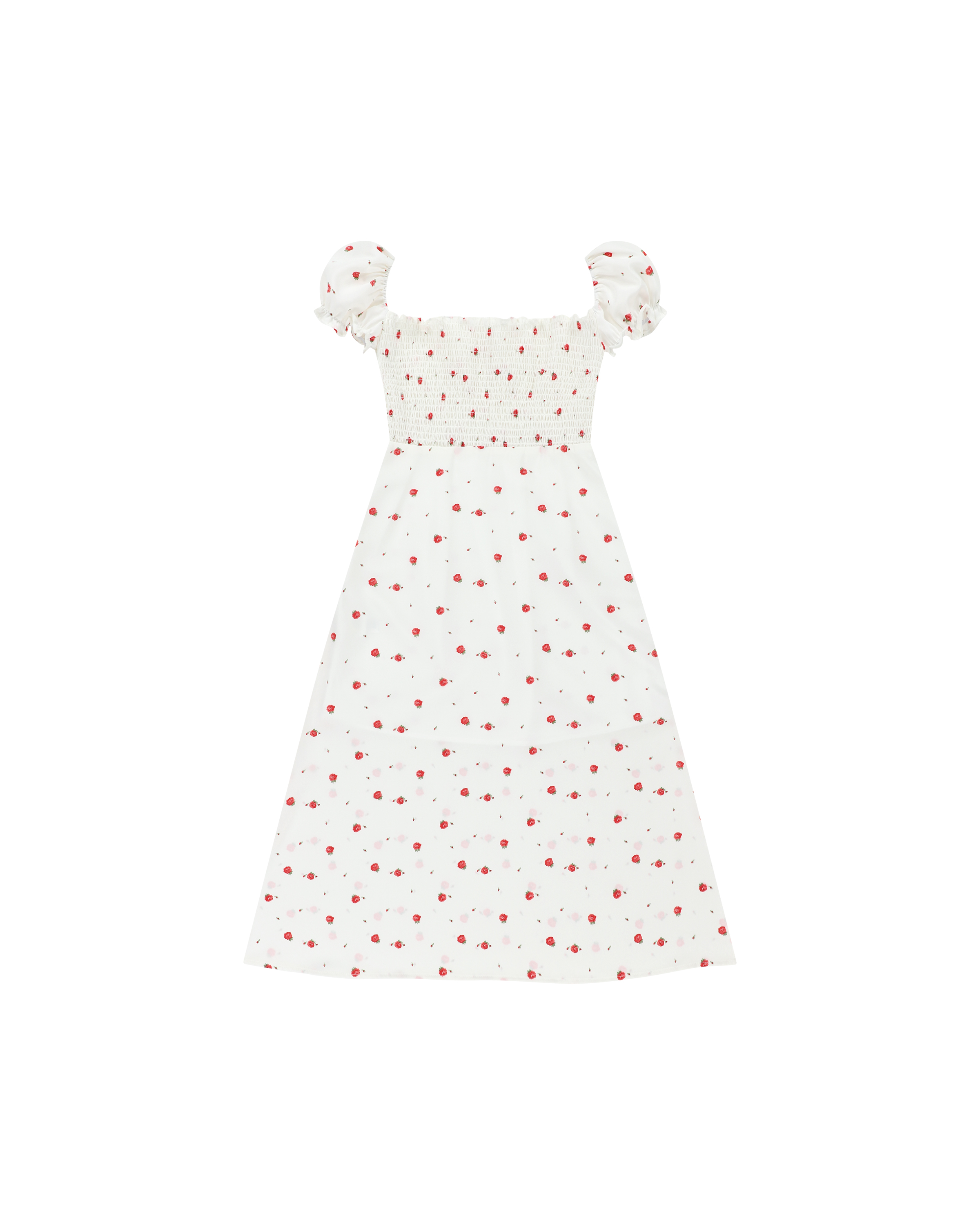 - 잔잔한 플라워 패턴에 스모킹 처리가 포인트인 드레스 - 귀여운 캡소매와 프릴 디테일로 발랄한 무드 연출 - 차르르 떨어지는 소재로 몸에 달라붙지 않아 시원한 착용감