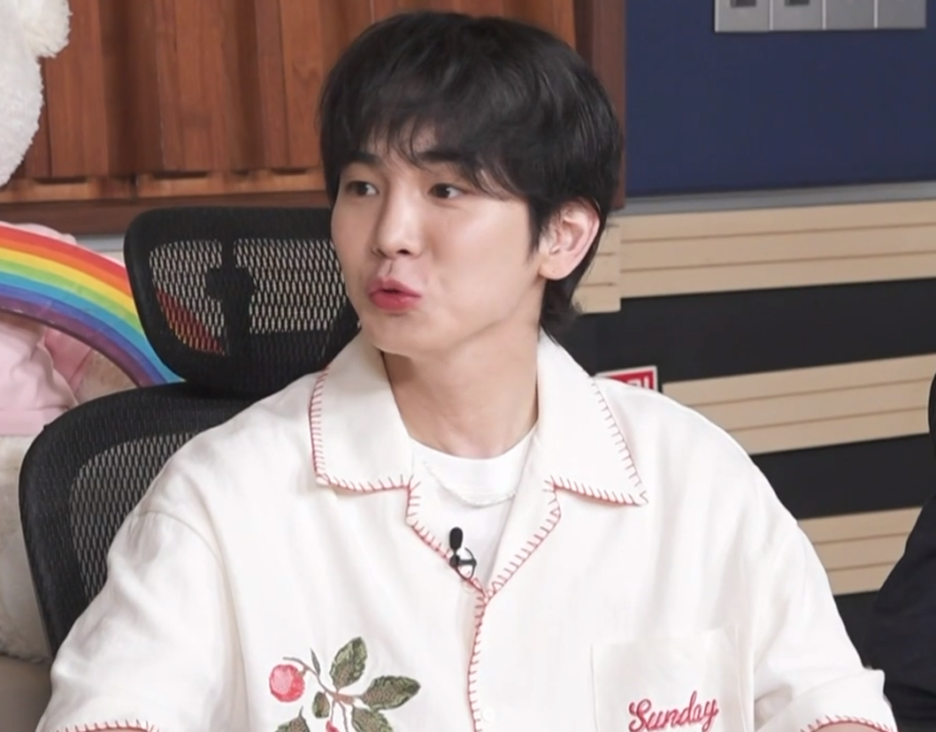 키가 착용한 선데이후르츠마켓의 RED CHERRY SHIRT IVORY는 깔끔하고 귀여운 체리 패턴이 돋보이는 셔츠입니다.