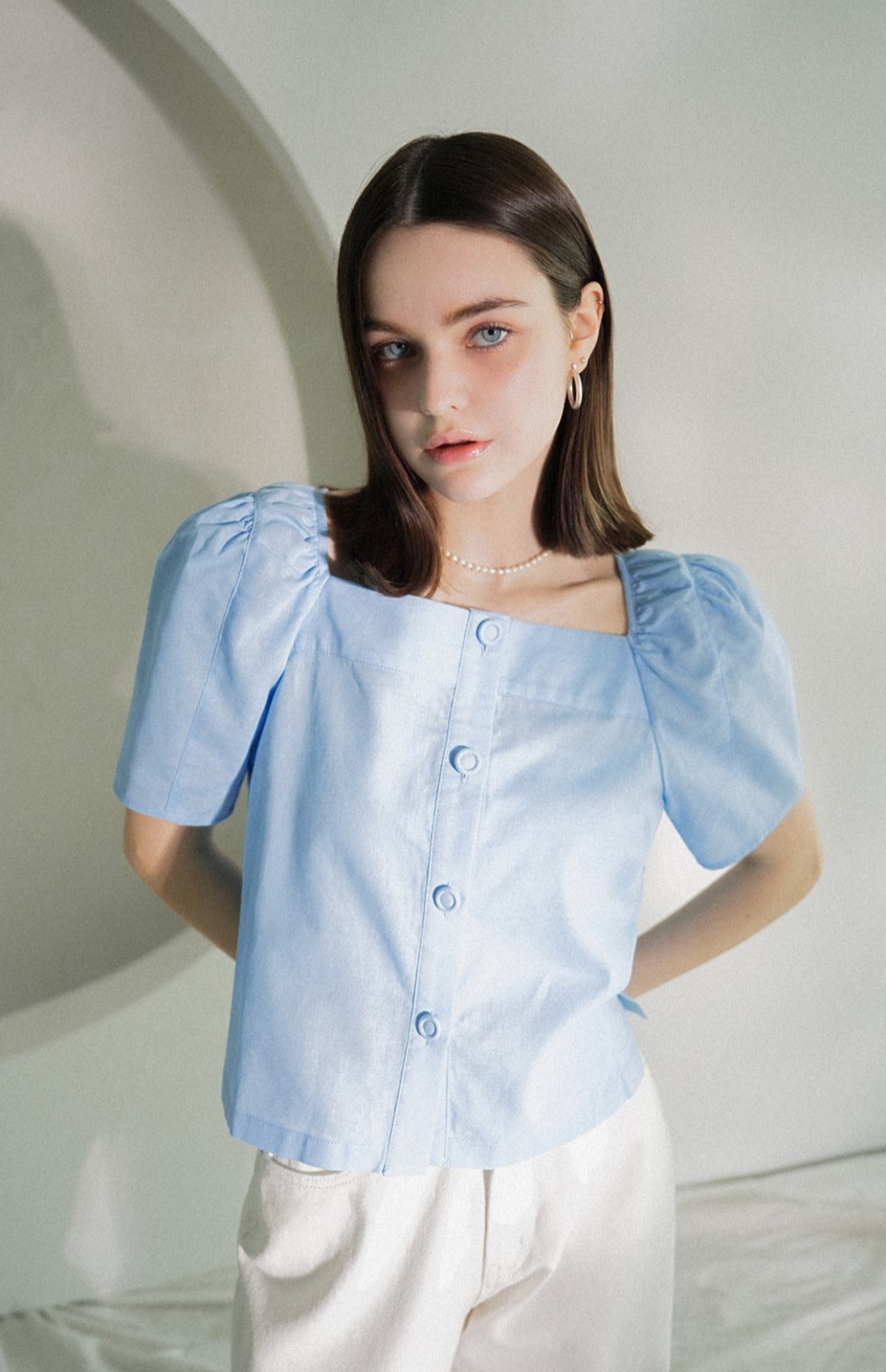제품분류 : 상의 > 셔츠/블라우스 브랜드 : 비바셔스(VIVACIOUS) 제품번호 : VV42BL01 제품 : Pellier Square Neck Puff Sleeve Blouse - 4COL - 25,200
