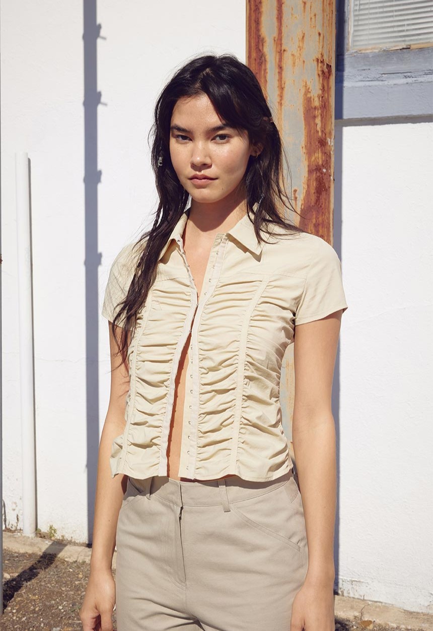 상품명: 레이브(RAIVE) Shirring Hook Blouse in Beige VW3MB173-91